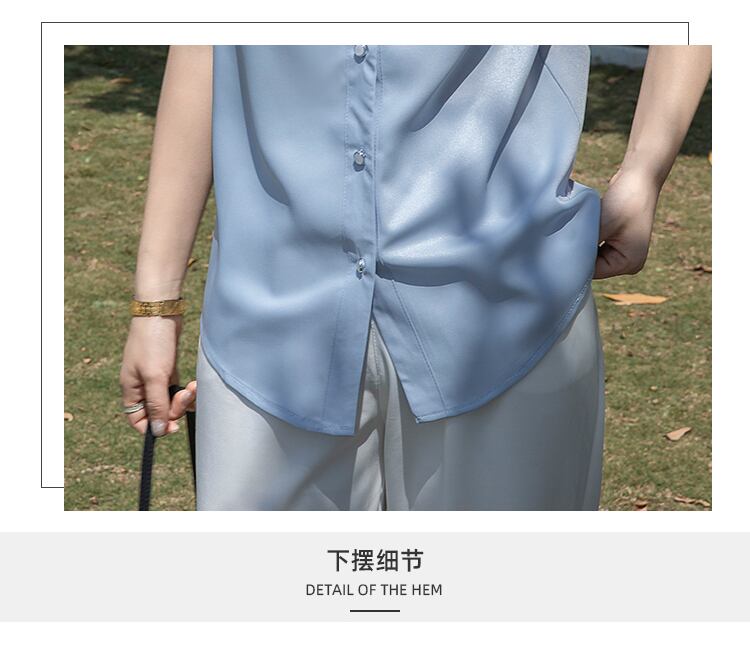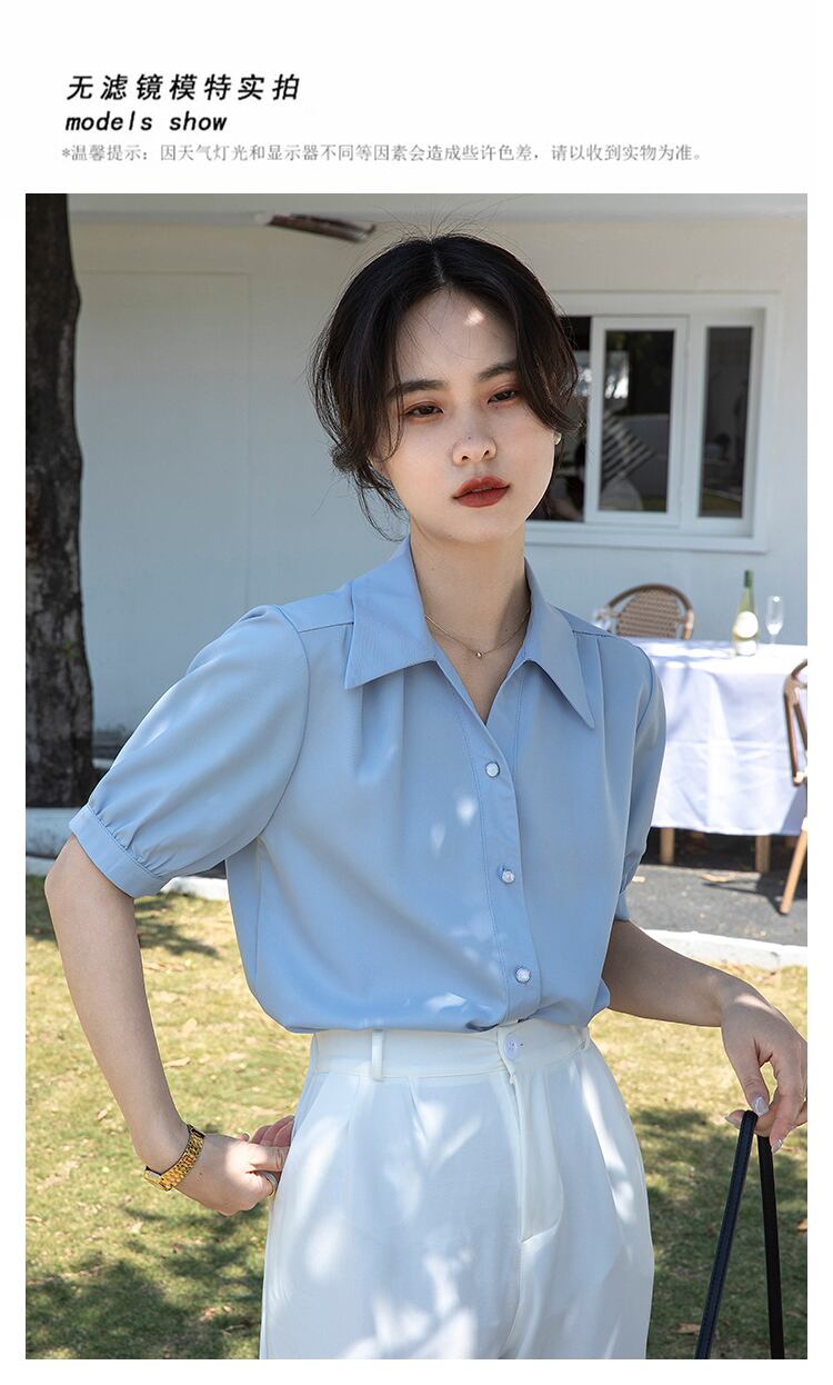 ブルーシフォンスリーブシャツ 夏服Vネックワンピースルーズトップス 夏物 コーデ Marchs32123346861