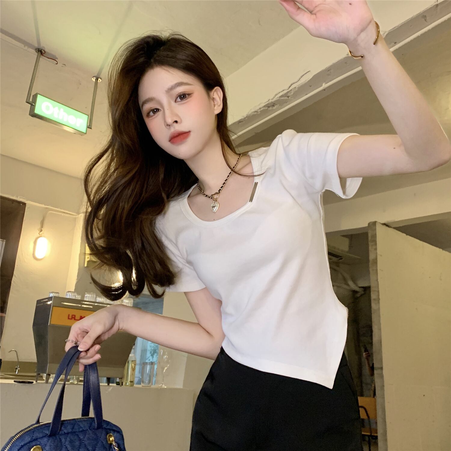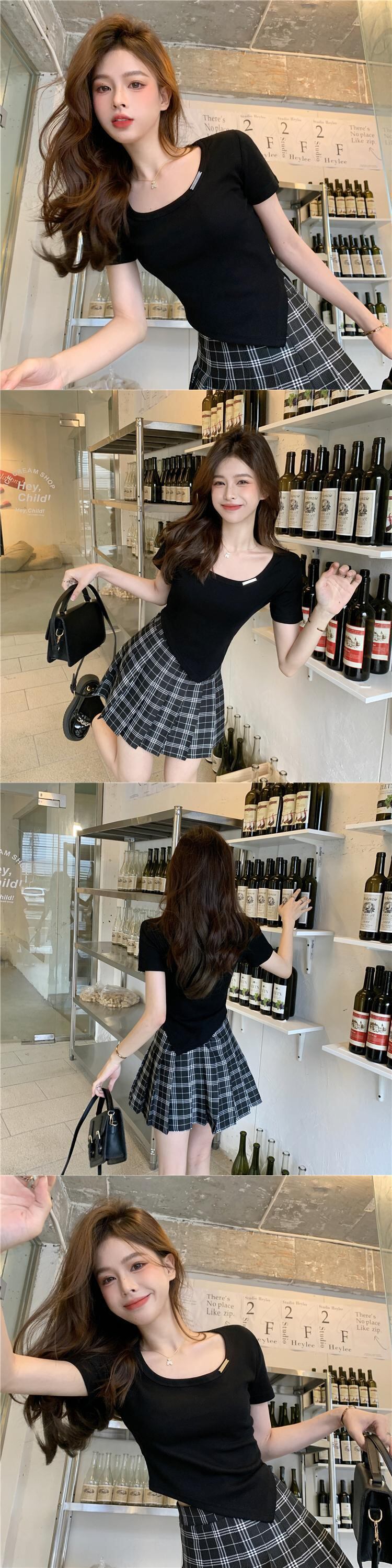 グリーンショートTシャツ薄手夏服スタイルトップス 大人ガーリー スウィート キュート カジュアル 夏物 コーデ Marchs11945645992
