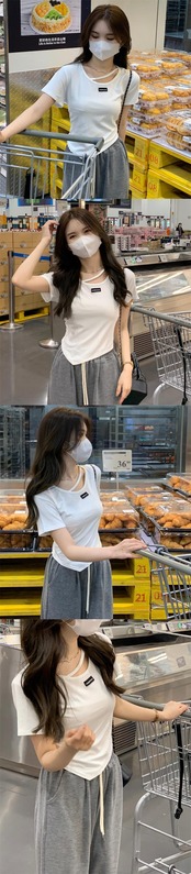 ショートTシャツ夏服韓国ファッションスタイル薄手ハイウェストウェストトップス 夏物 ウエスト コーデ Marchs56971053458