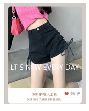ショーツ 夏服薄手ギャザーAラインブラックパンツ 夏物 ウエスト コーデ Marchs30517095645