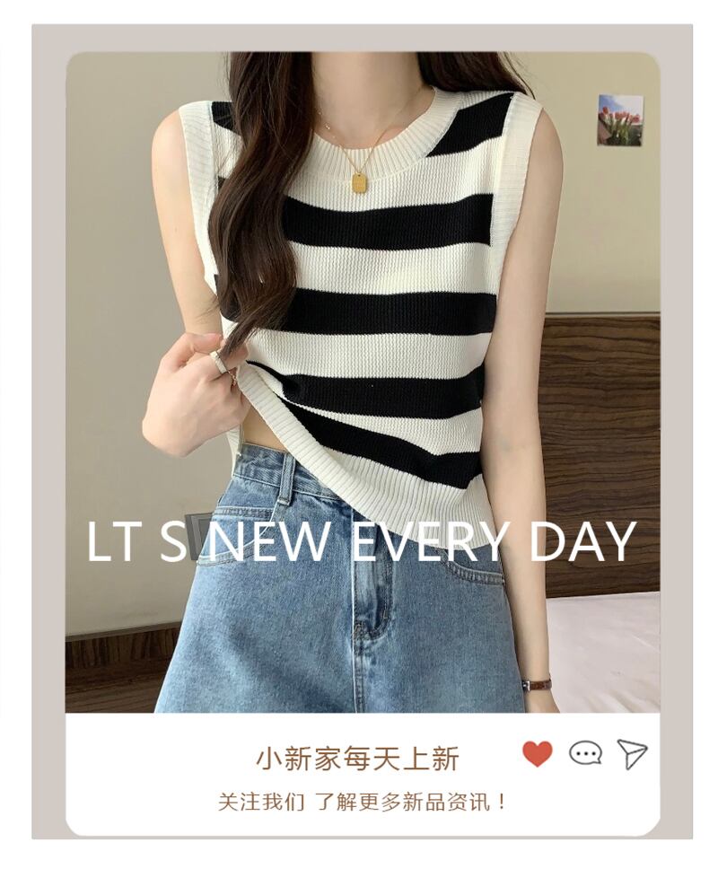 韓国ファッションストライプニット夏服スタンダードスリムフィット薄手トップス レトロ 夏物 シルク スタイル コーデ Marchs32187847055