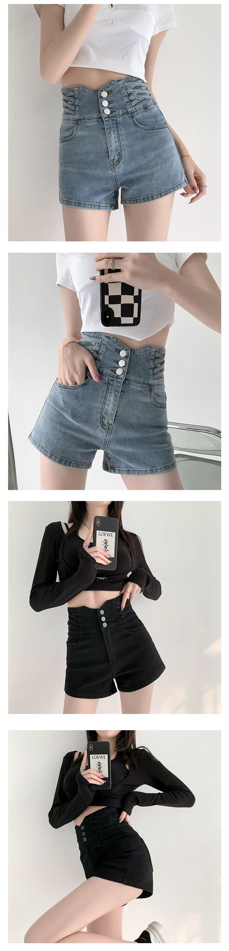 ブラックハイウェストウェストショーツ 夏服Aライン薄手パンツ 夏物 ウエスト コーデ Marchs70745952498