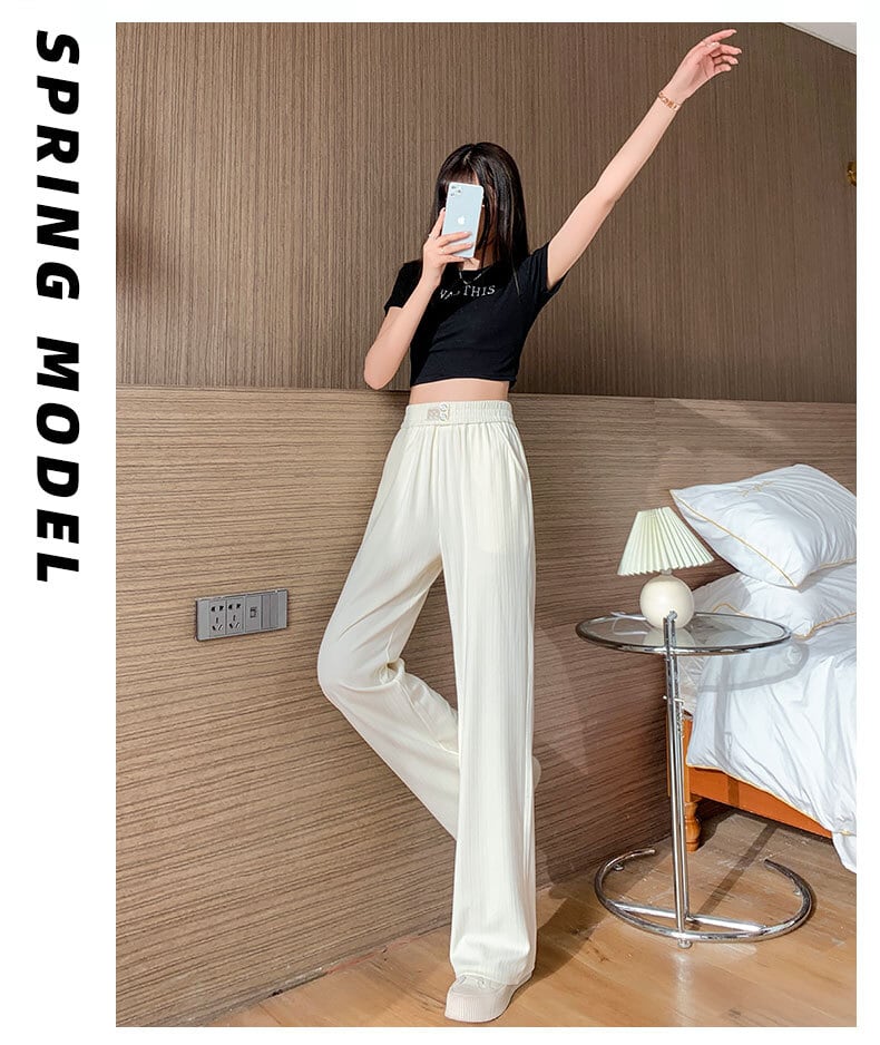 ワイドレッグパンツ 夏服薄手ハイウェストウェストルーズカジュアル 夏物 ワイドパンツ シルク ウエスト コーデ Marchs14697357179