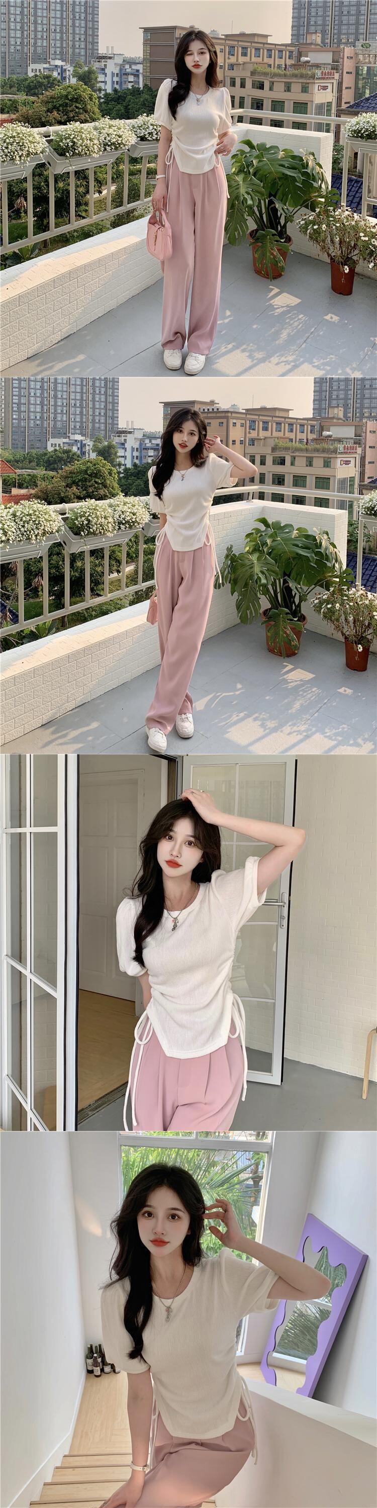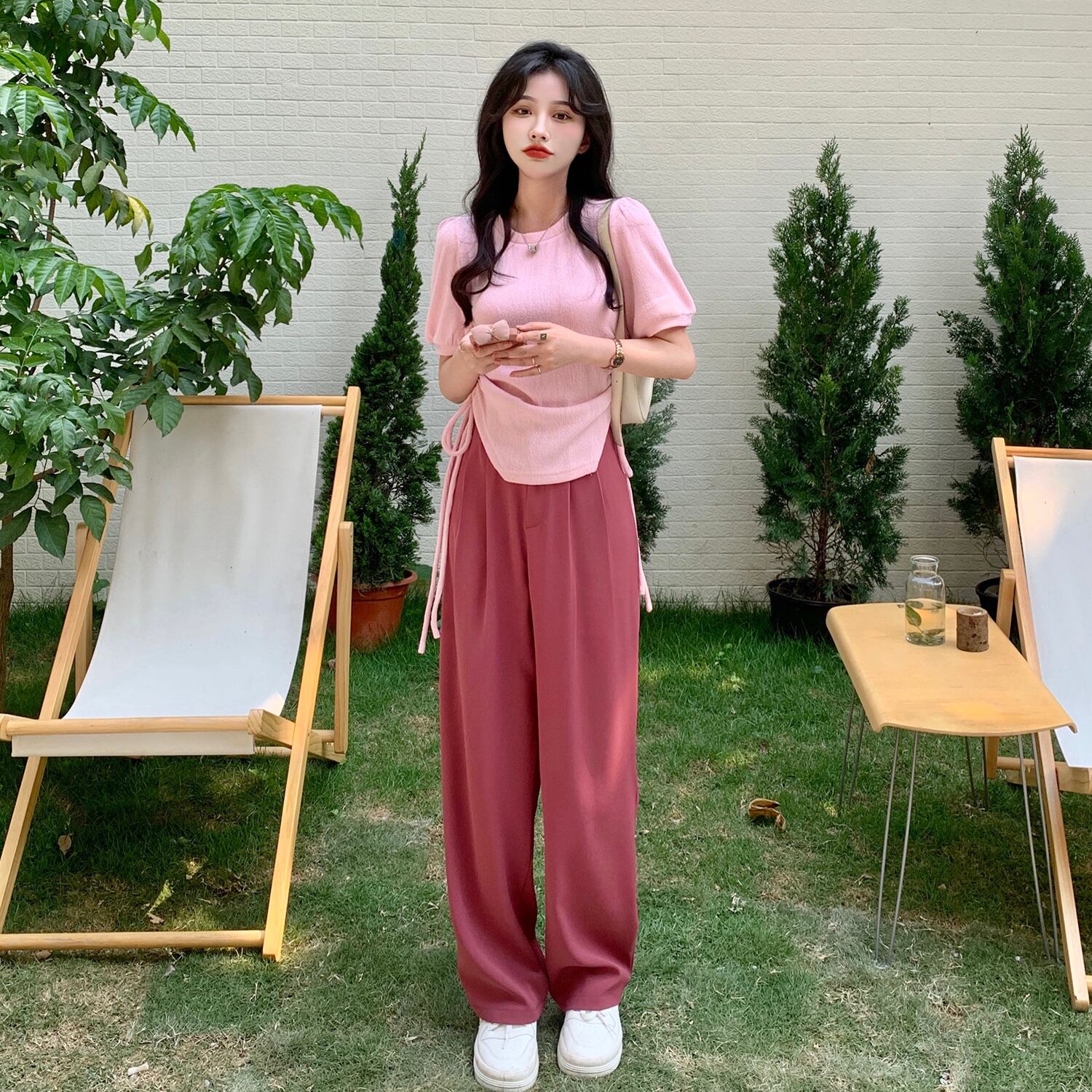 スリーブTシャツショート夏服NEWギャザートップス 大人ガーリー スウィート キュート カジュアル 夏物 コーデ Marchs68512387467