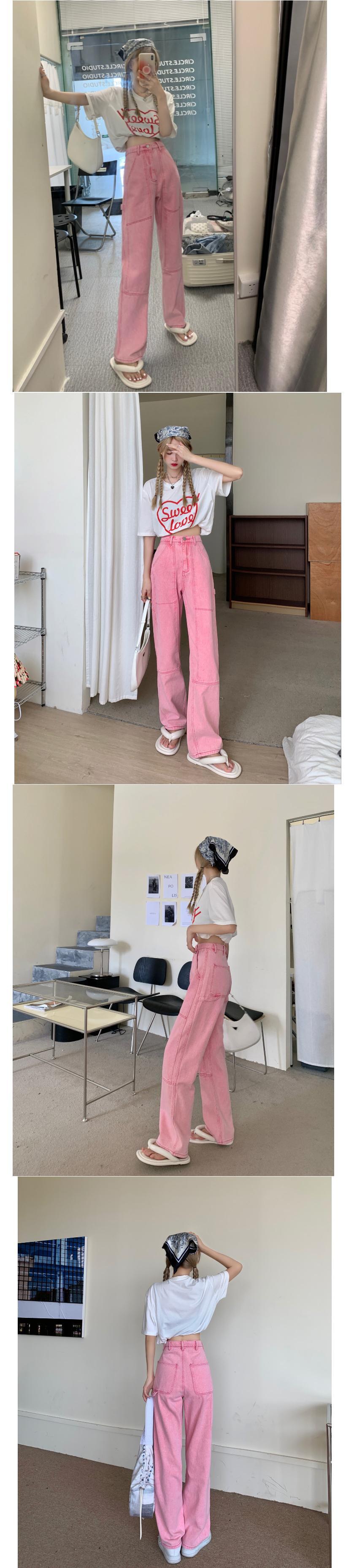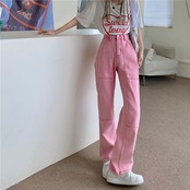 ウェストワイドレッグジーンズ レディースルーズ薄手パンツ 夏服 ピンク 夏物 ワイドパンツ ウエスト コーデ Marchs43426736948