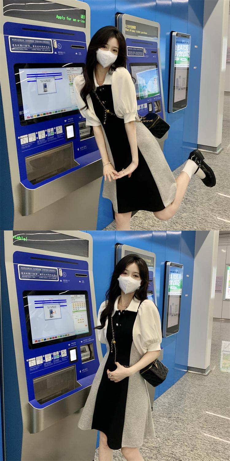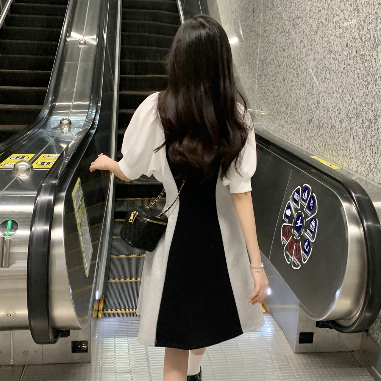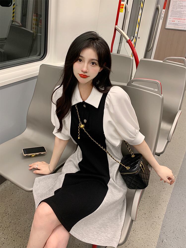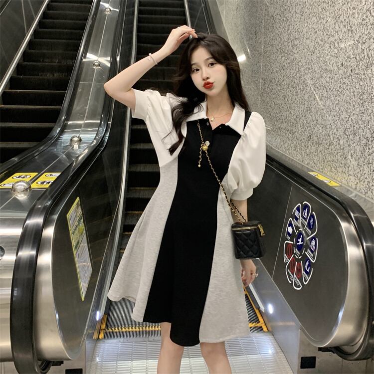 スタンダードカラーワンピース夏服ウェスト レトロ 夏物 パフスリーブ ウエスト コーデ Marchs82235518680