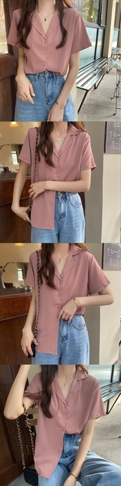 Vネックシャツ 夏服トップス ピンク 夏物 コーデ Marchs29533901143