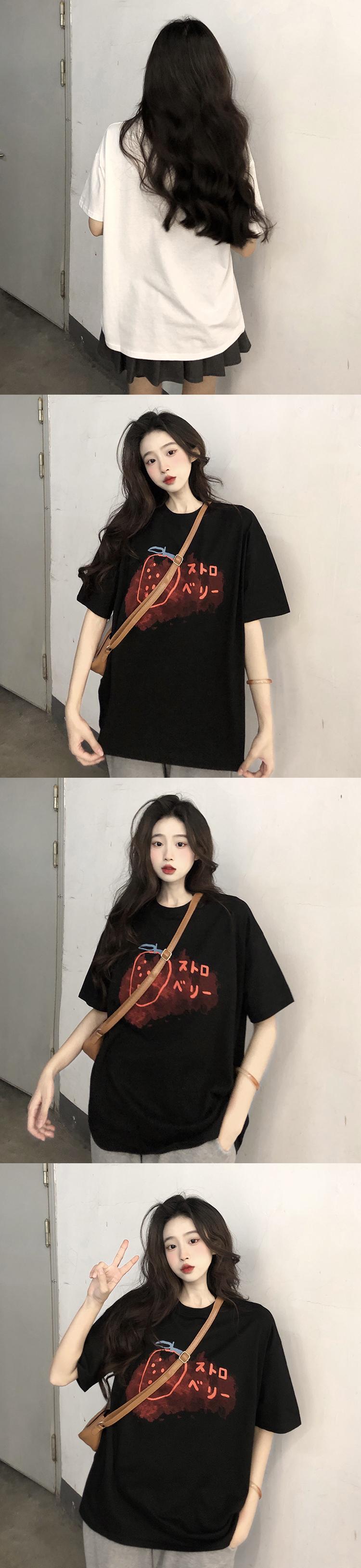 色:ホワイトウォーターペインティングストロベリーT,ブラックウォーターペインティングストロベリーT