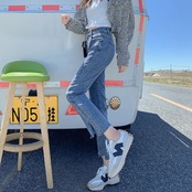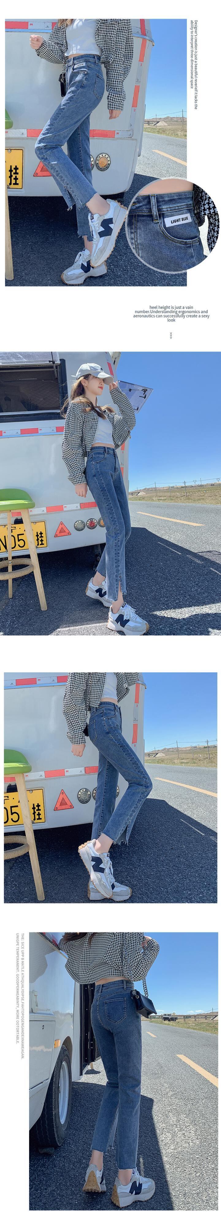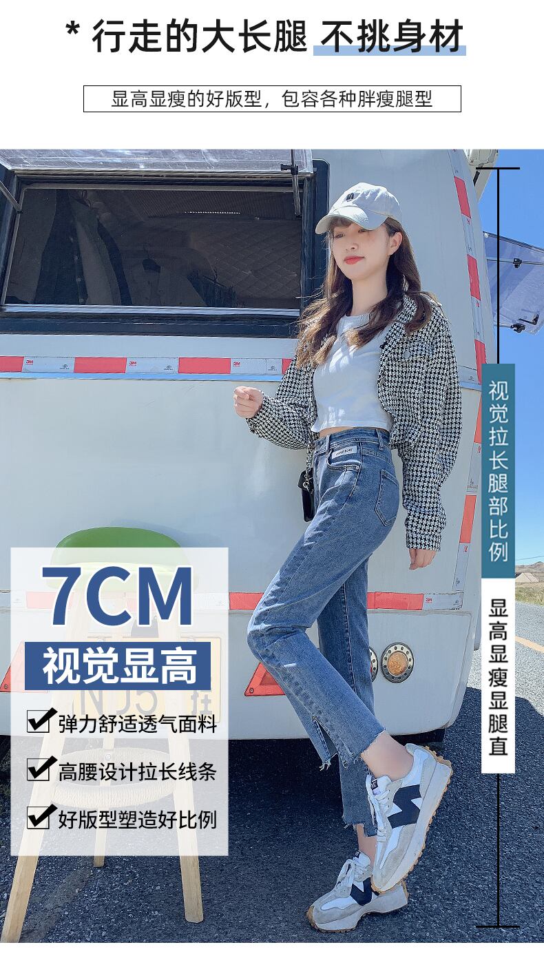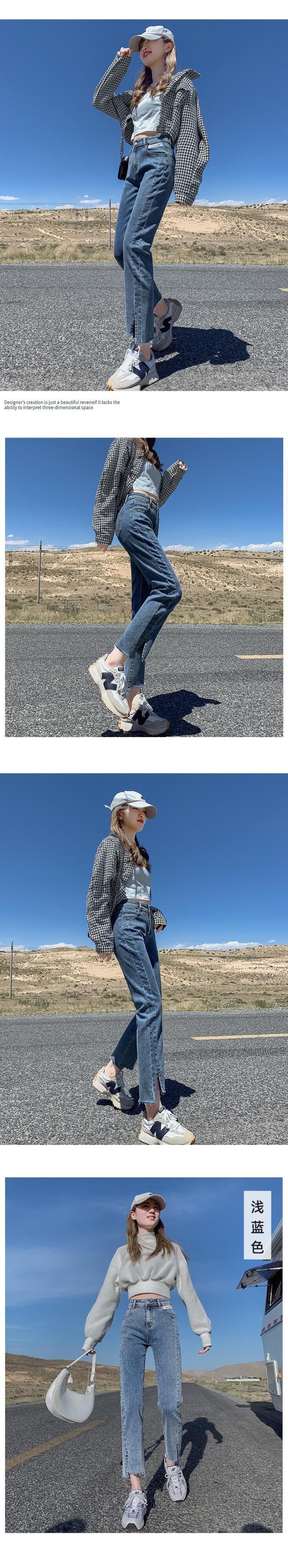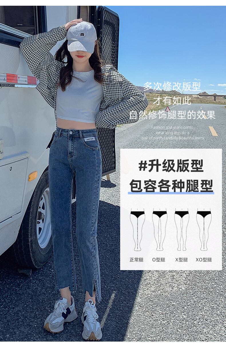 ジーンズ 夏服ハイウェスト薄手ルーズスリットパンツ 夏物 ウエスト コーデ Marchs43906118674