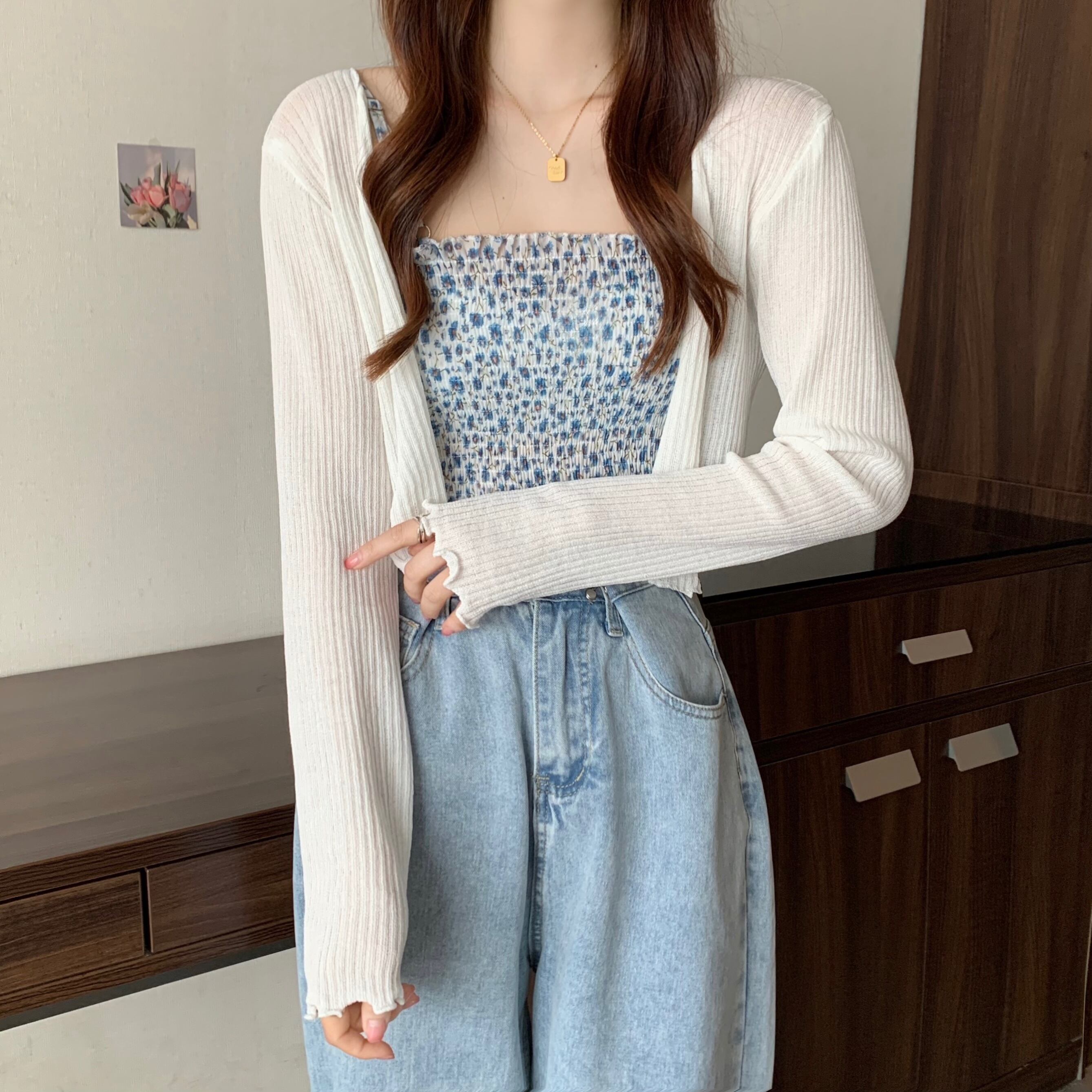 ホワイトカーディガン薄手夏服ショールショートブラウス 夏物 コーデ Marchs2457275666