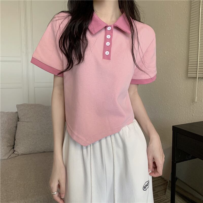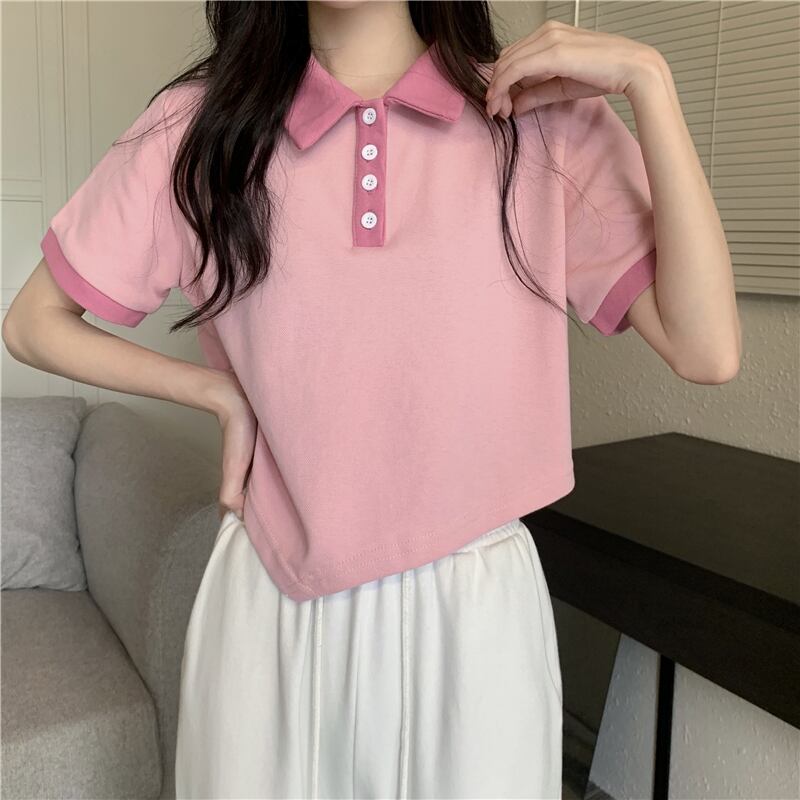 ショートシャツ トップス 夏服韓国ファッションルーズTシャツ ピンク 夏物 スタイル コーデ Marchs26559224158