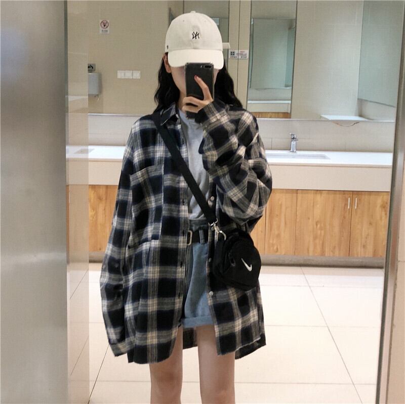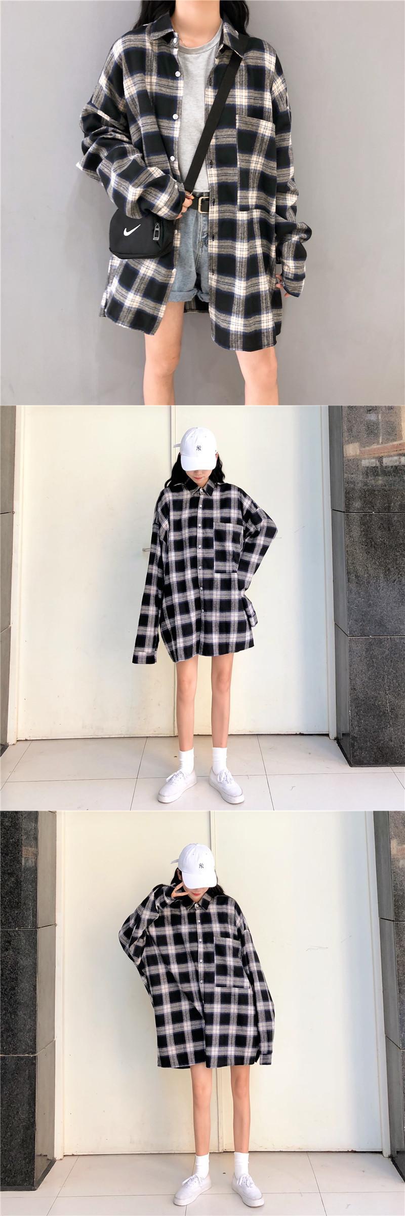 格子柄シャツ ジャケット 夏服薄手ルーズトップス 夏物 ミドル丈 コーデ Marchs38731262177