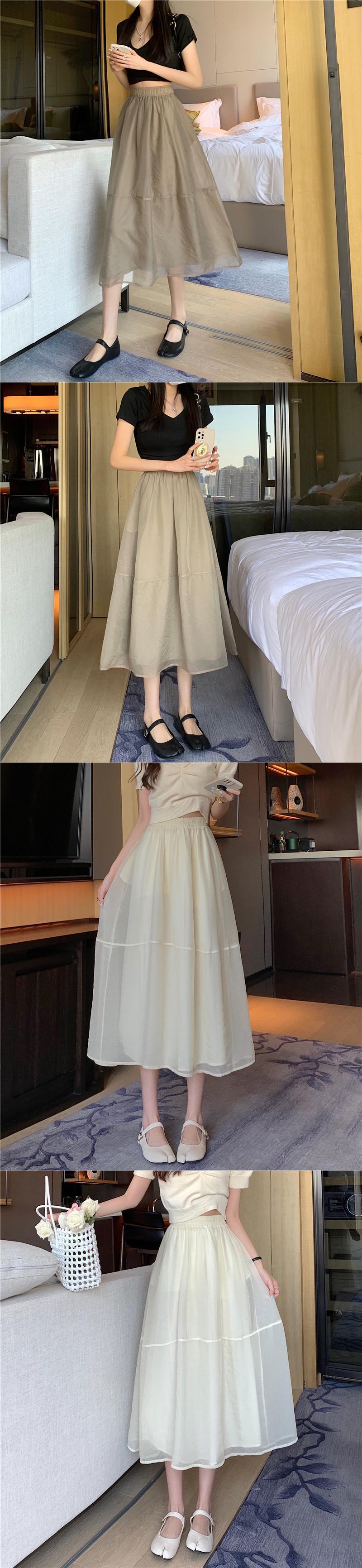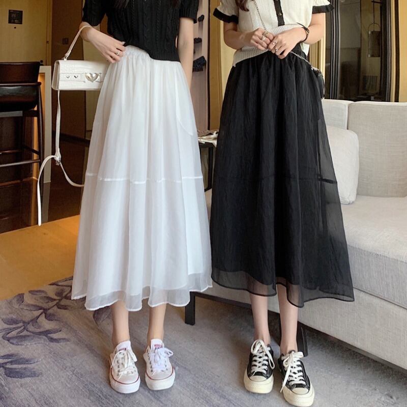 プリーツスカート 夏服ハイウェストAラインメッシュ ふわふわ 夏物 ウエスト ミドル丈 コーデ Marchs96068523096