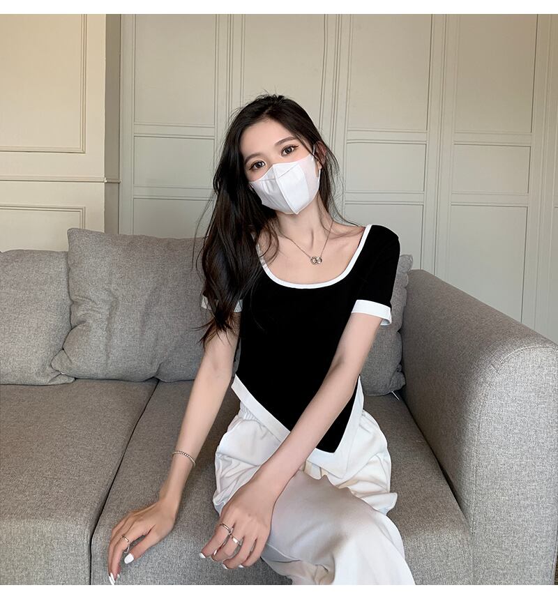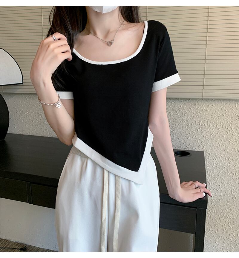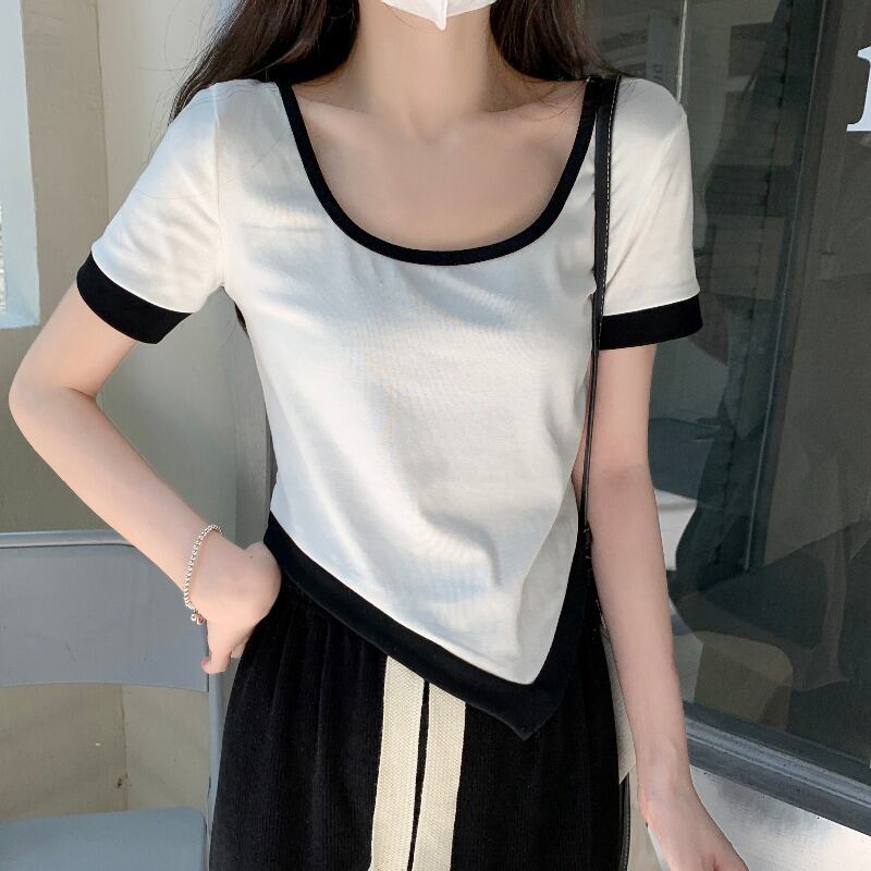 ショートTシャツシャツ 夏服カラーラウンドネックトップス 夏物 Oネック コーデ Marchs80181646644