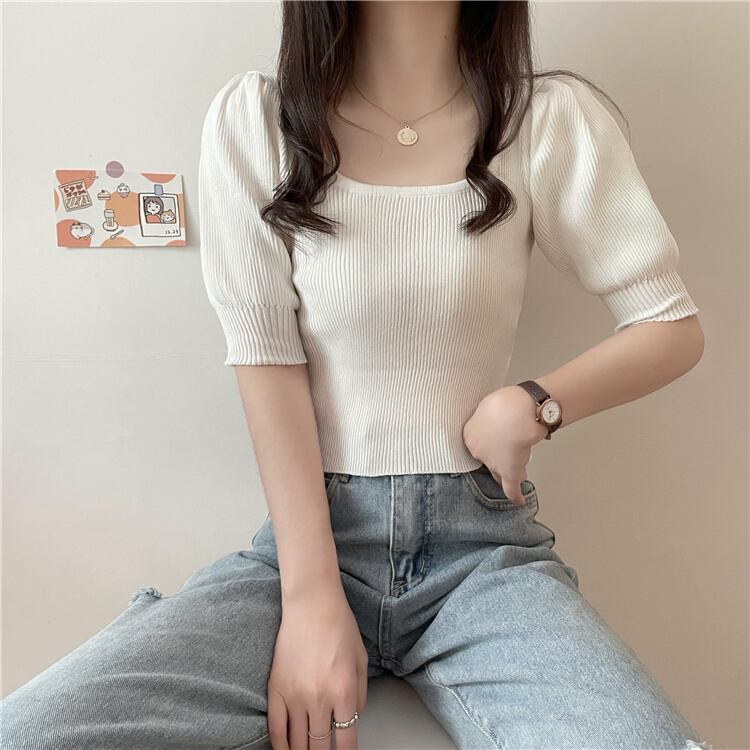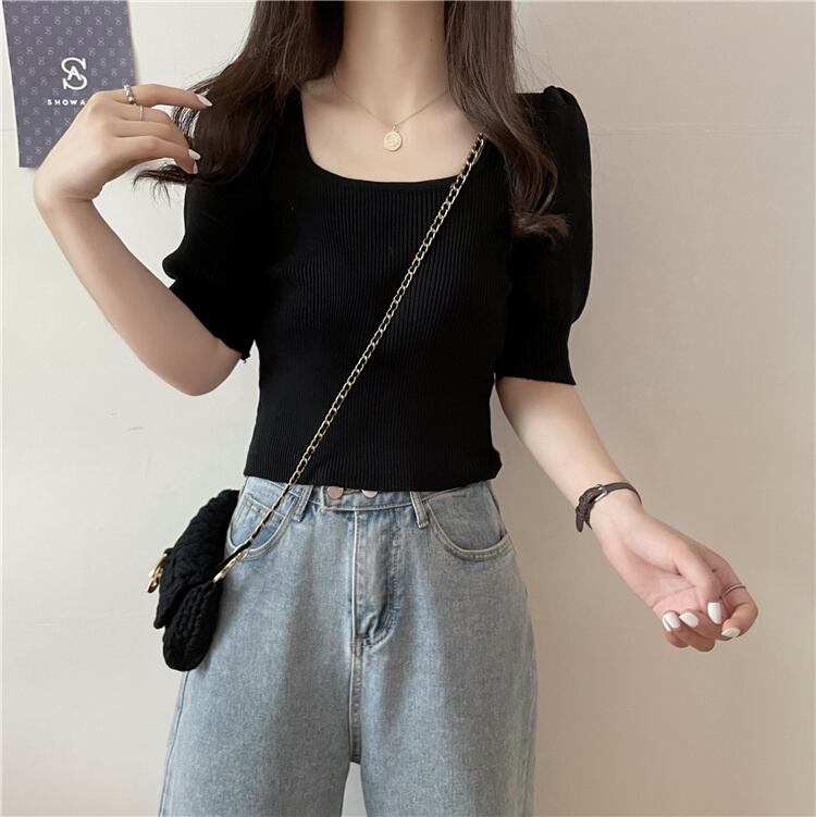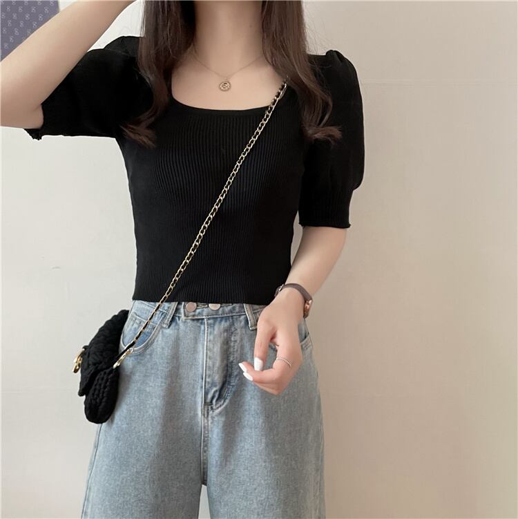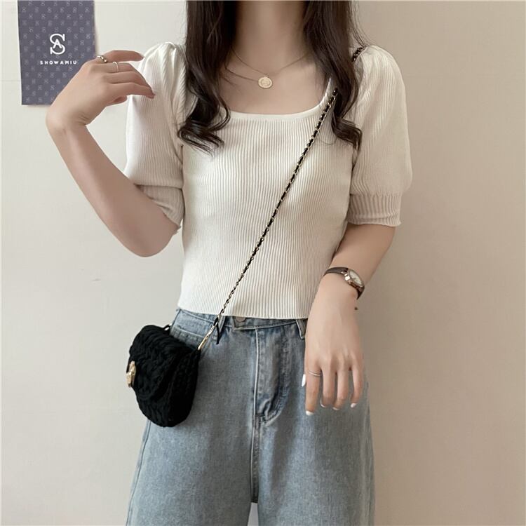 薄手セーター 夏服ショートTシャツトップス 夏物 シルク スクウェア コーデ Marchs99652378387