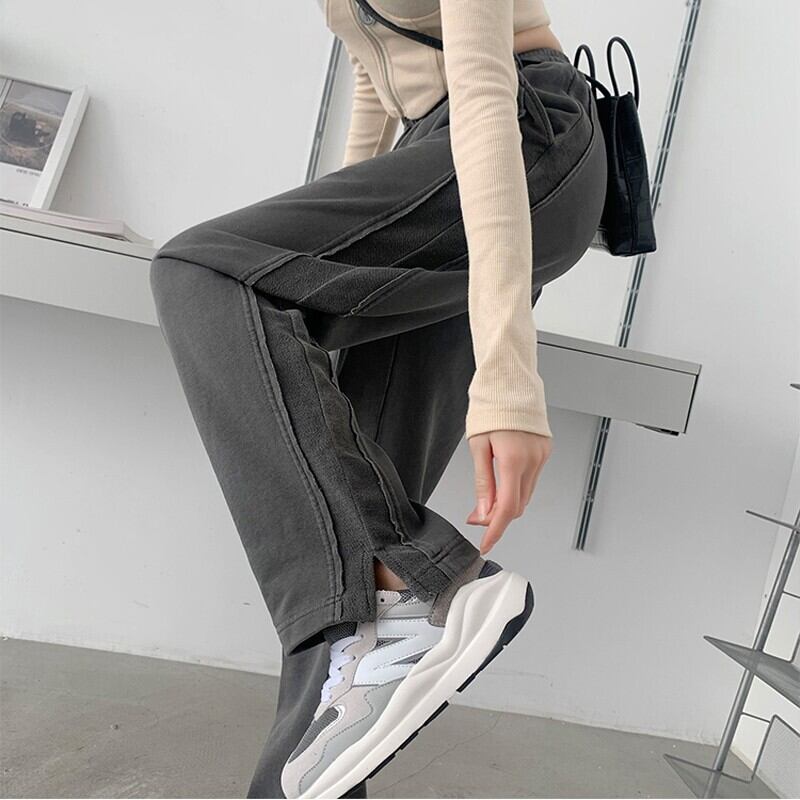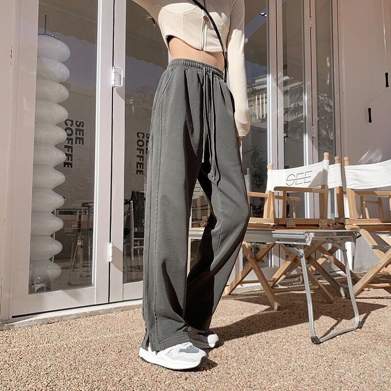 グレーパンツ スプリング夏服ハイウェストウェストワイドレッグカジュアル ストリート 春物 夏物 ワイドパンツ ウエスト コーデ Marchs48066989466