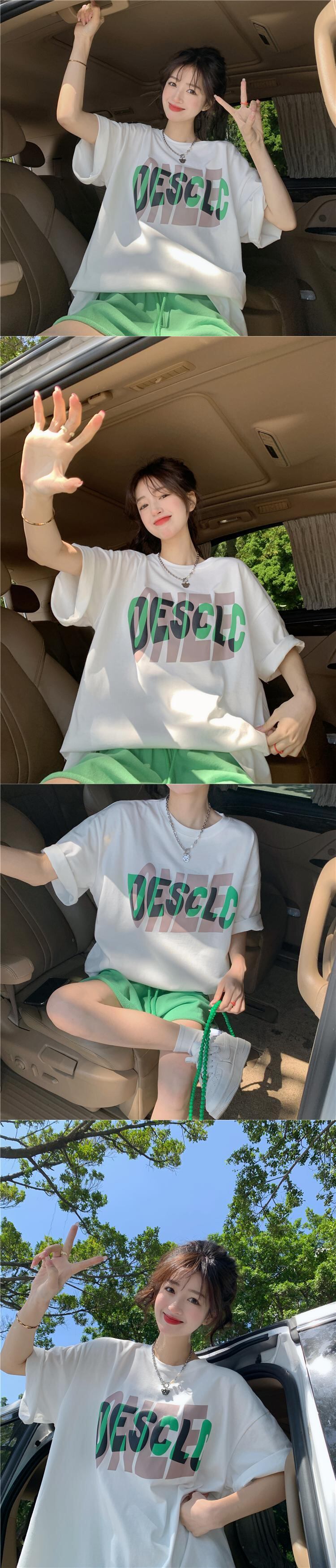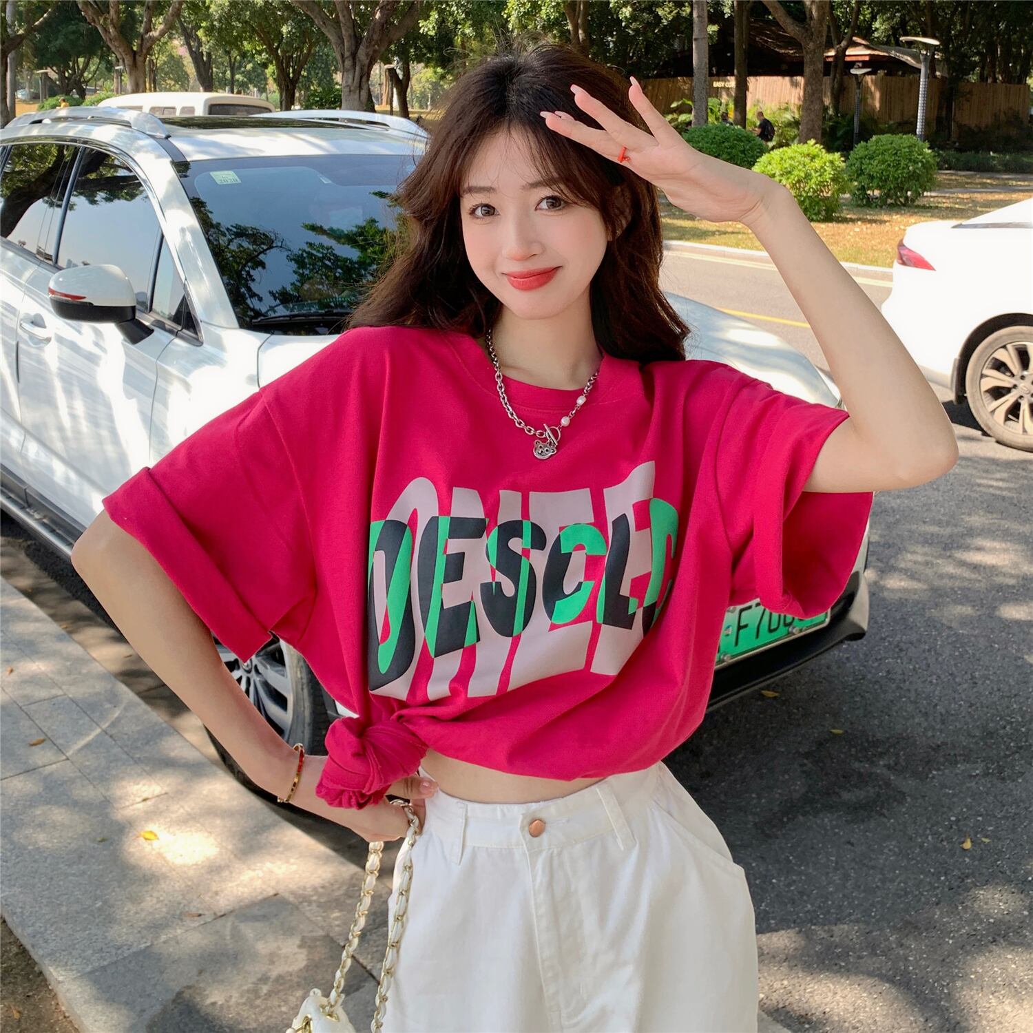 スタンダードTシャツ夏服ルーズラウンドネックプリントカラートップス NEW コットン レトロ 夏物 Oネック コーデ Marchs53651050449