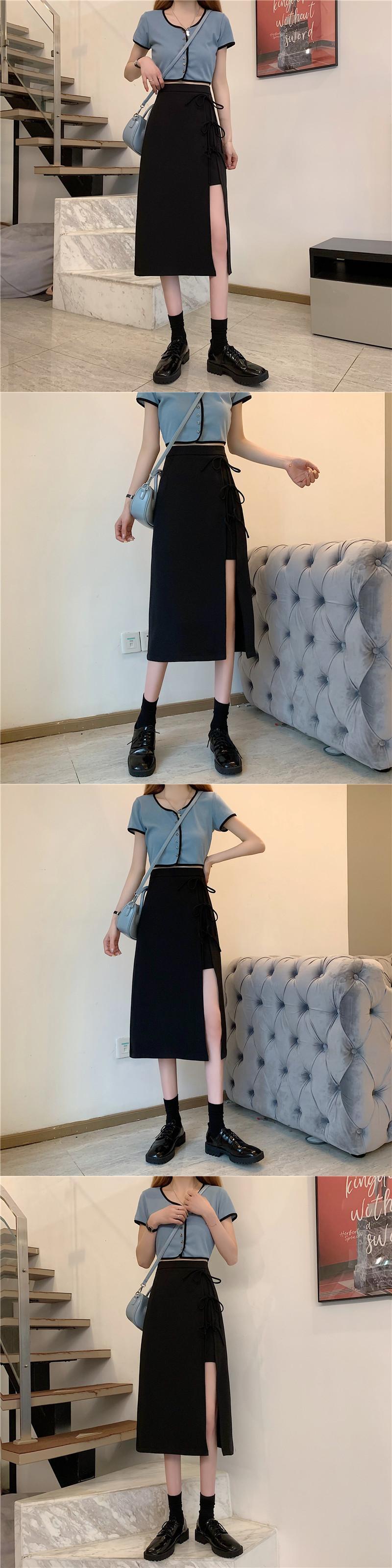 ブラックスカート ハイウェストAラインスリムスリット夏服 夏物 ウエスト ミドル丈 コーデ Marchs7964634288