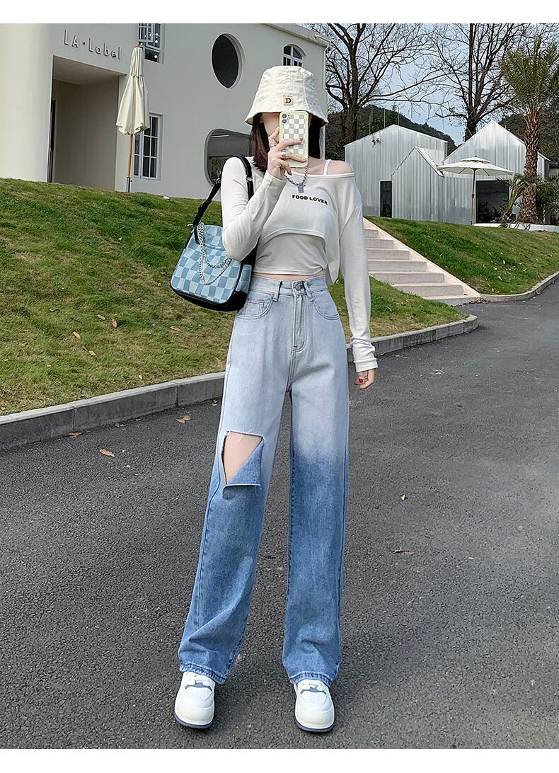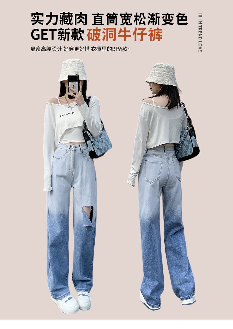 ジーンズ 夏服ハイウェスト薄手ルーズカラーパンツ 夏物 ウエスト コーデ Marchs27200746972