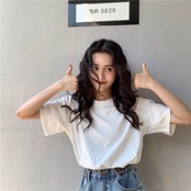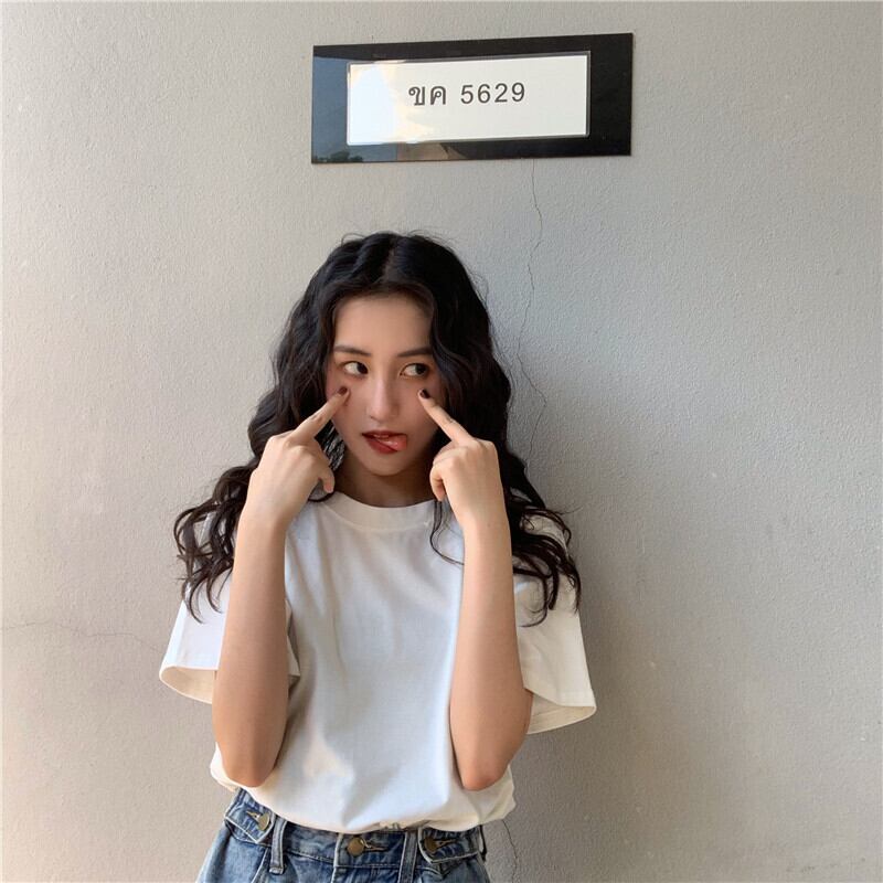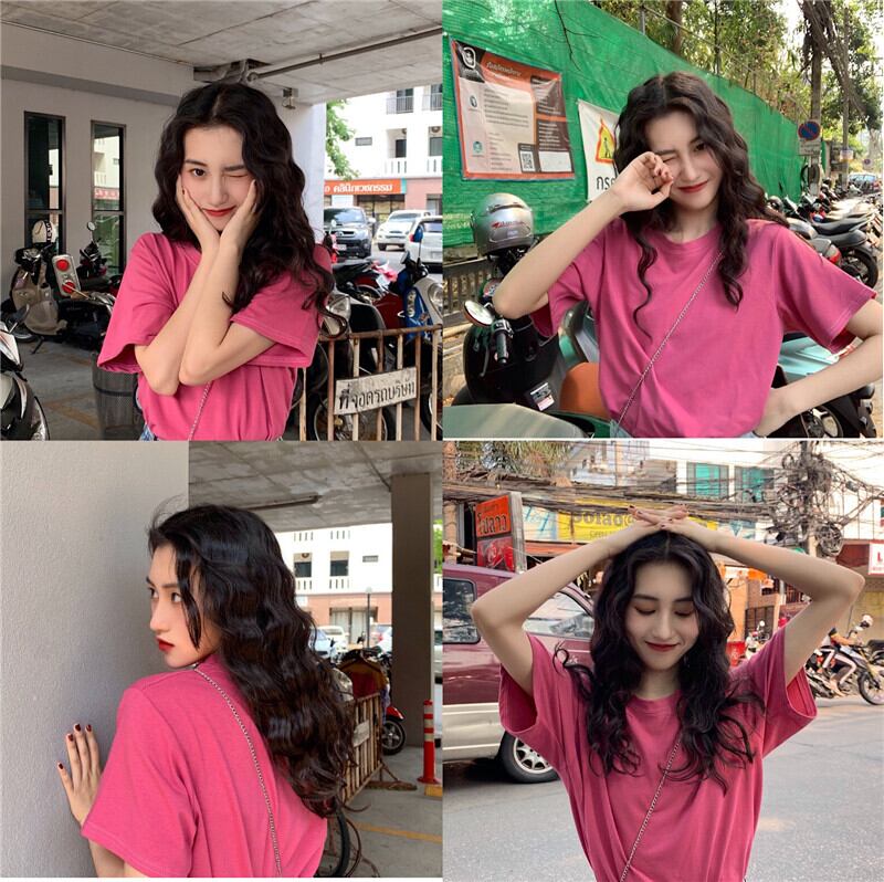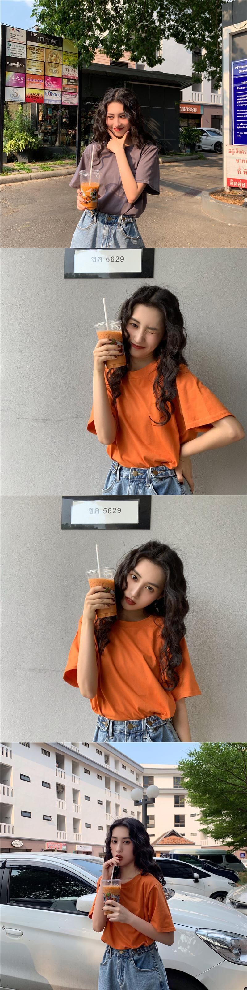 カラーTシャツショート韓国ファッションスタイルレッドトップス パンツ 夏服 半袖 ハーフスリーブ 夏物 コーデ Marchs46584010055