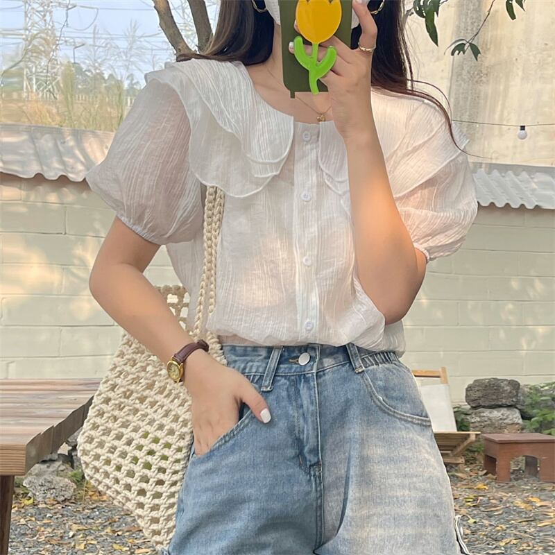 カラーシャツ 夏服薄手ルーズシフォントップス 大人ガーリー スウィート キュート カジュアル 夏物 コーデ Marchs56764766171