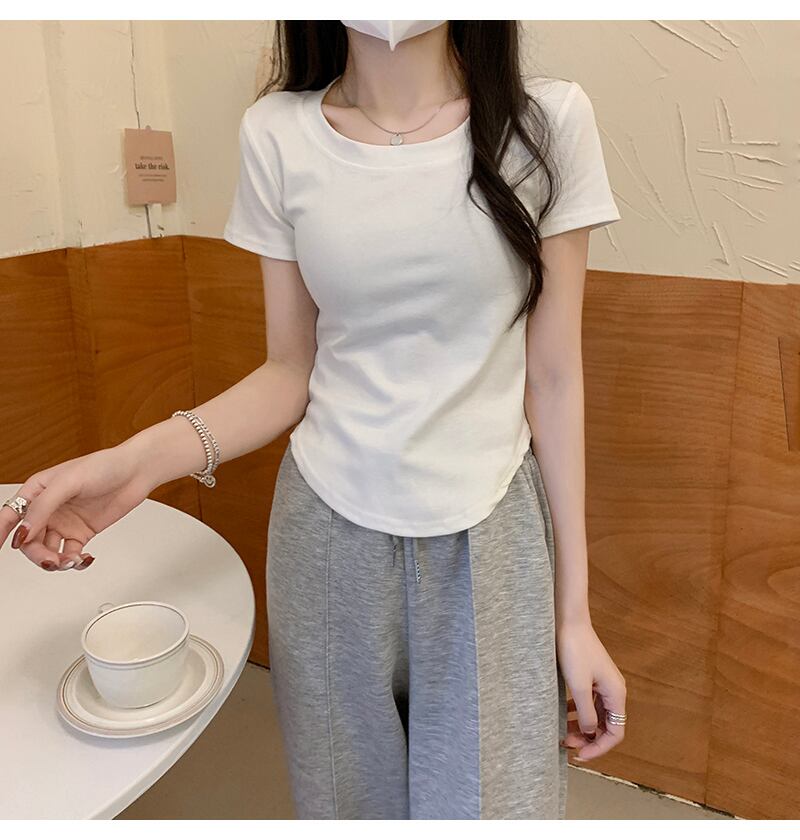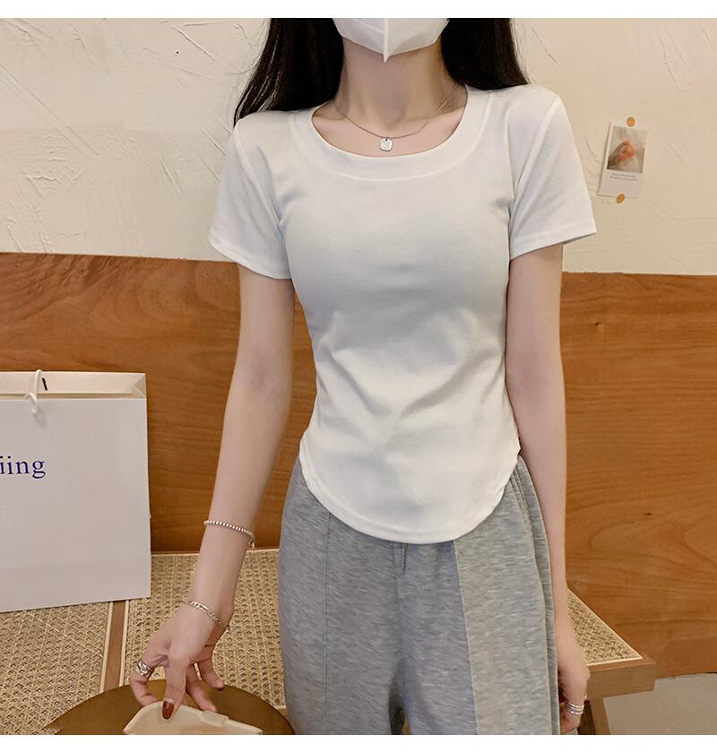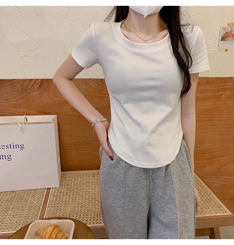 ラウンドネックTシャツシャツ 夏服スタイルウェストゆったりトップス 夏物 Oネック ウエスト コーデ Marchs50620655340