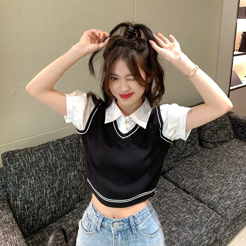 カラーショートシャツ 夏服スリムトップス 夏物 ステッチ コーデ Marchs77089672747