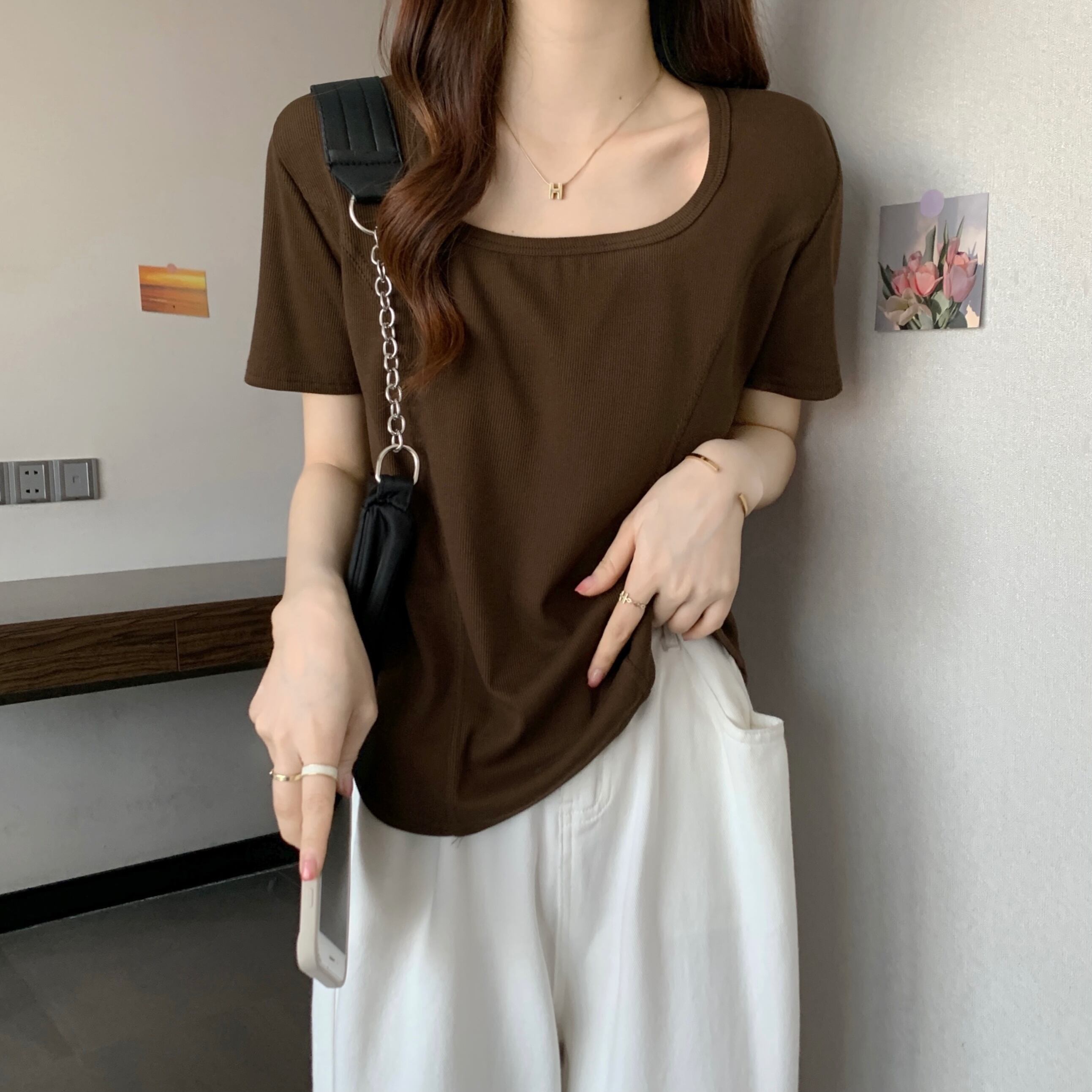 薄手Tシャツシャツ ゆったり夏服ルーズトップス 大きめサイズ 夏物 コーデ Marchs8917350083