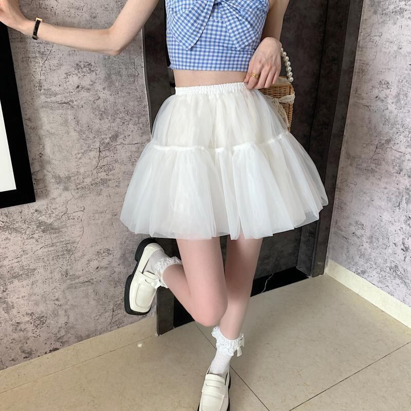 夏服ホワイトスカート レディースハイウェストウェストAラインメッシュ ふわふわ 夏物 ウエスト コーデ Marchs69002605817