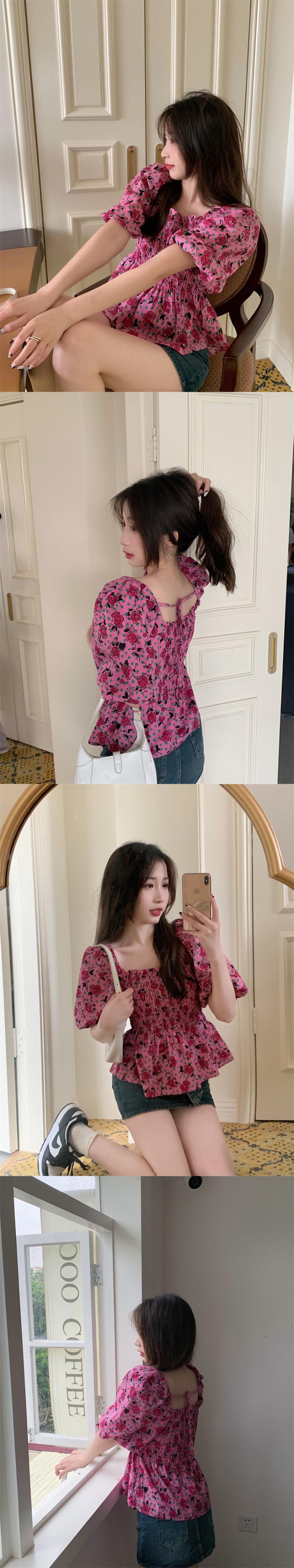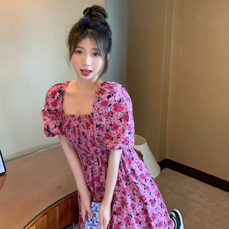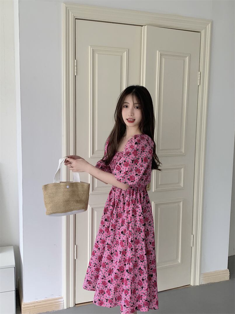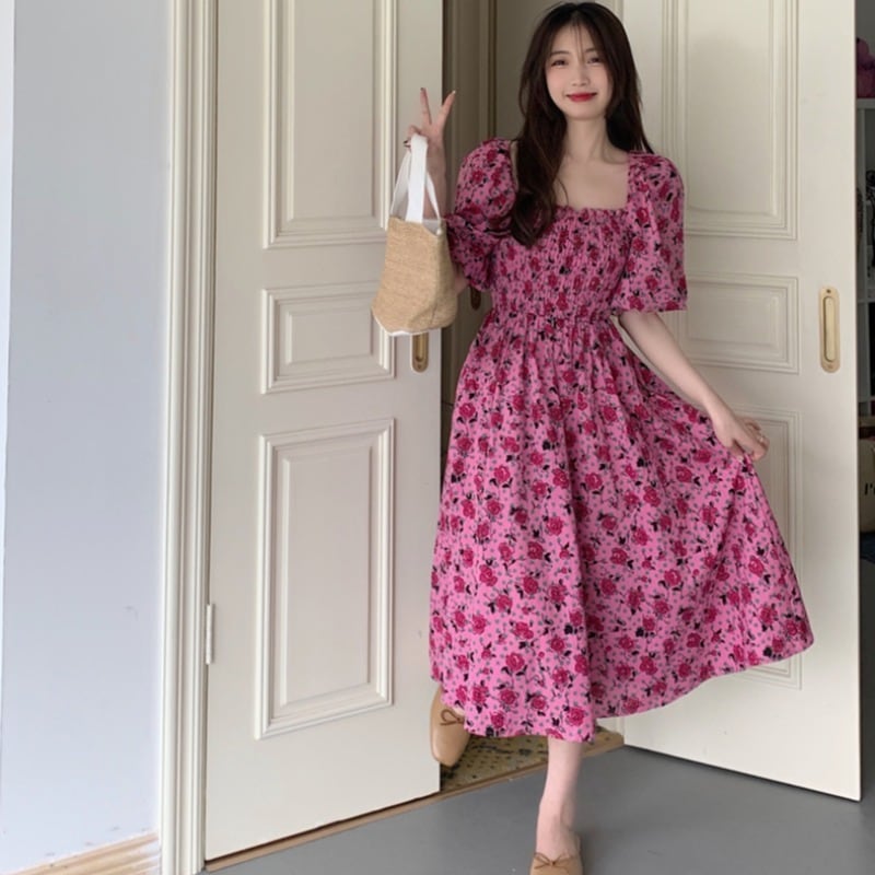 フローラル半袖スリーブワンピース夏服スカート ショート ハーフスリーブ 夏物 花柄 スクウェア ミドル丈 コーデ Marchs79417002295