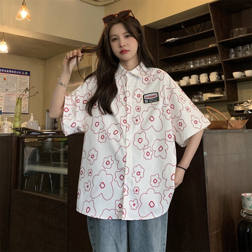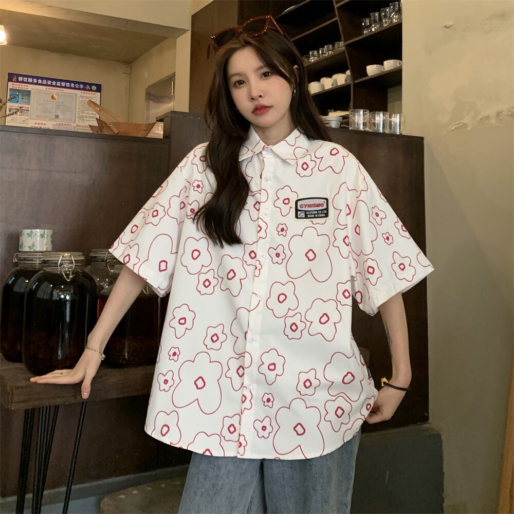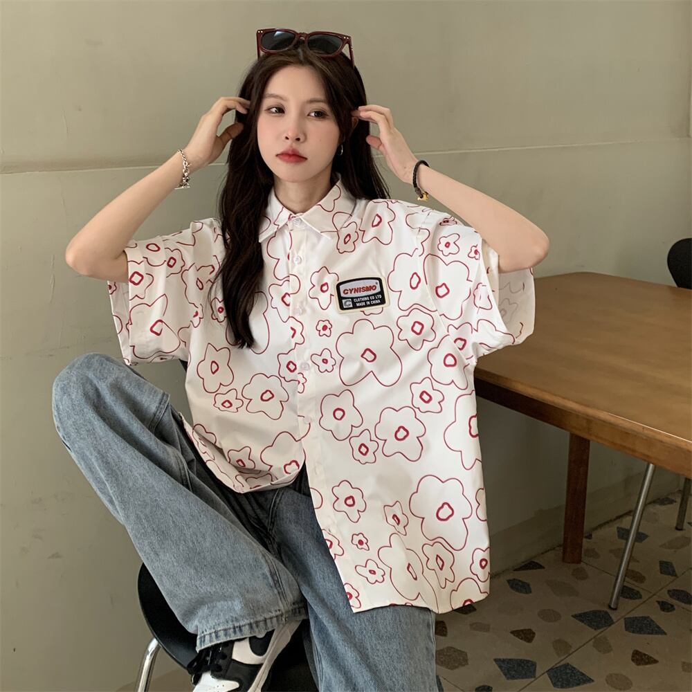 Flowerデザイン シャツ 夏服ルーズトップス ピンク 大人ガーリー スウィート キュート カジュアル 夏物 フラワーデザイン コーデ Marchs82027017987