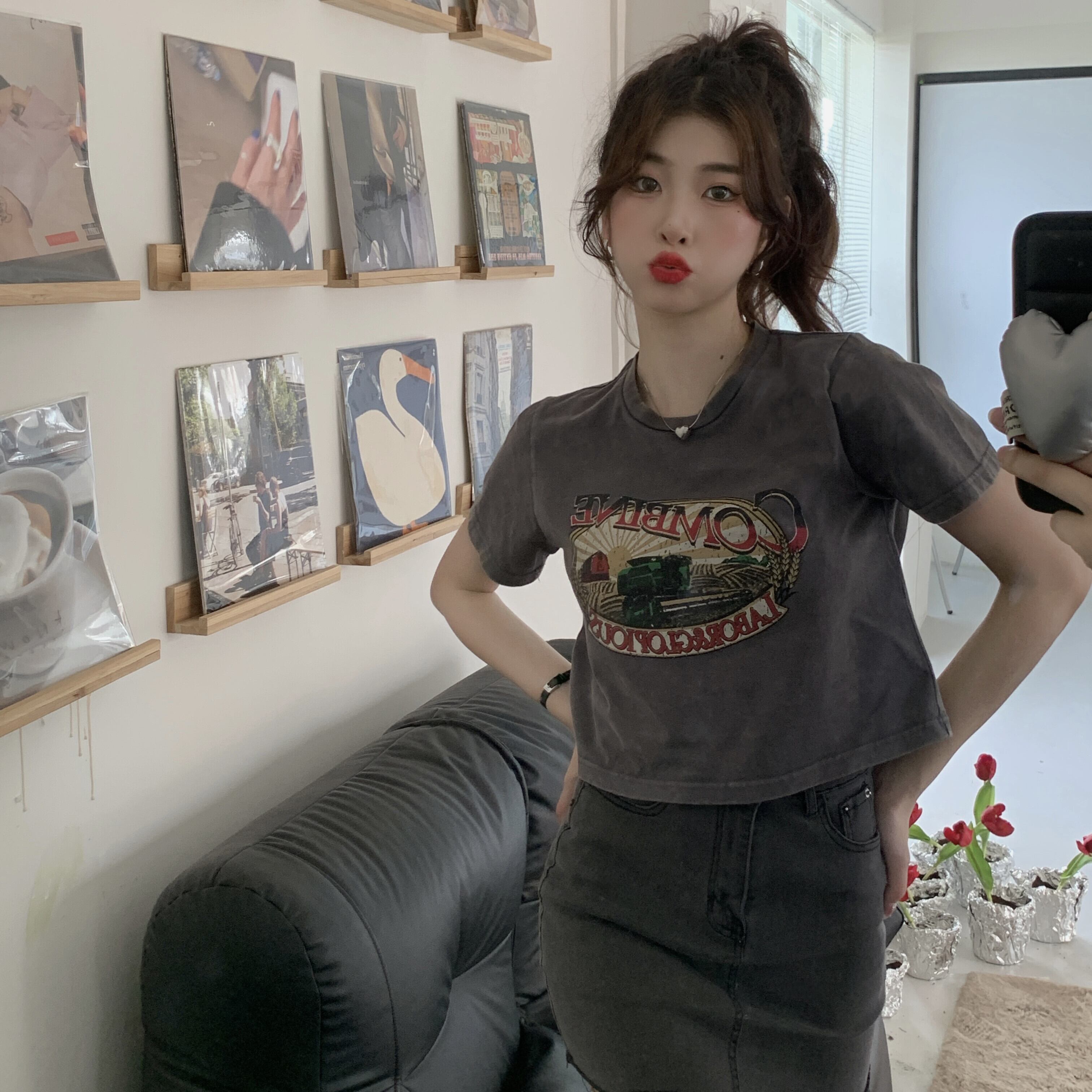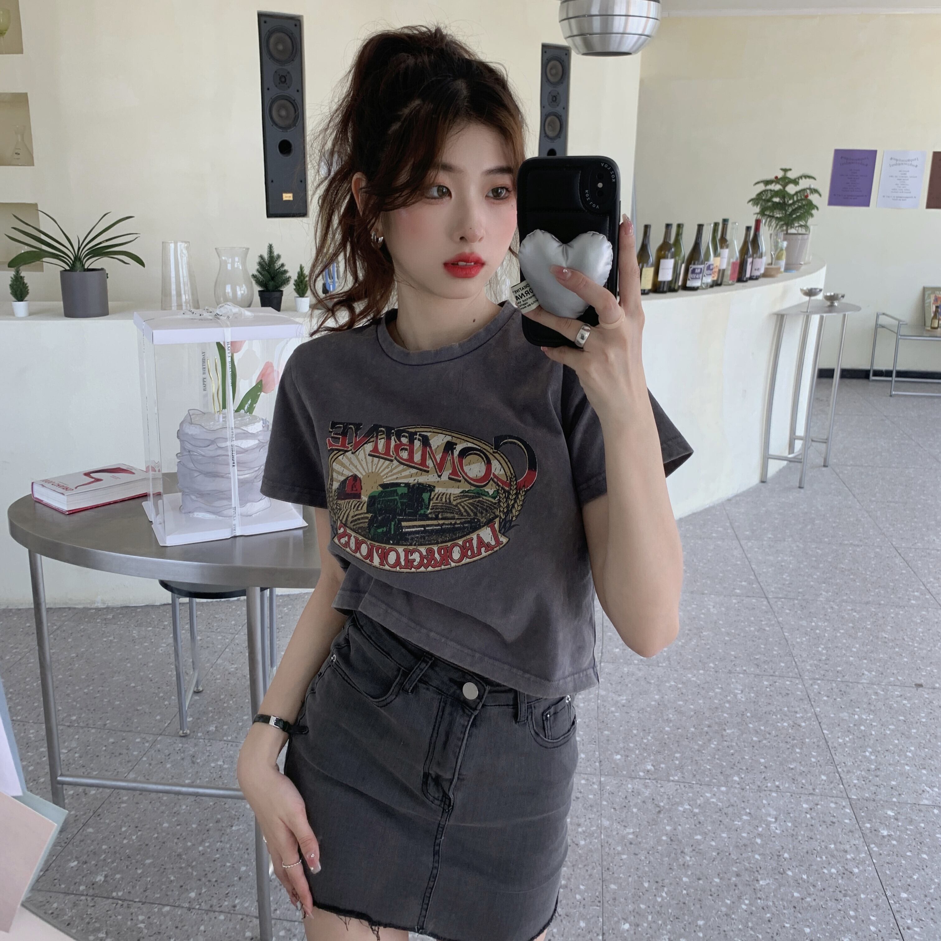 スタンダードショートTシャツ夏服スリムトップス NEW レトロ 大人ガーリー スウィート キュート カジュアル 夏物 コーデ Marchs30217390018
