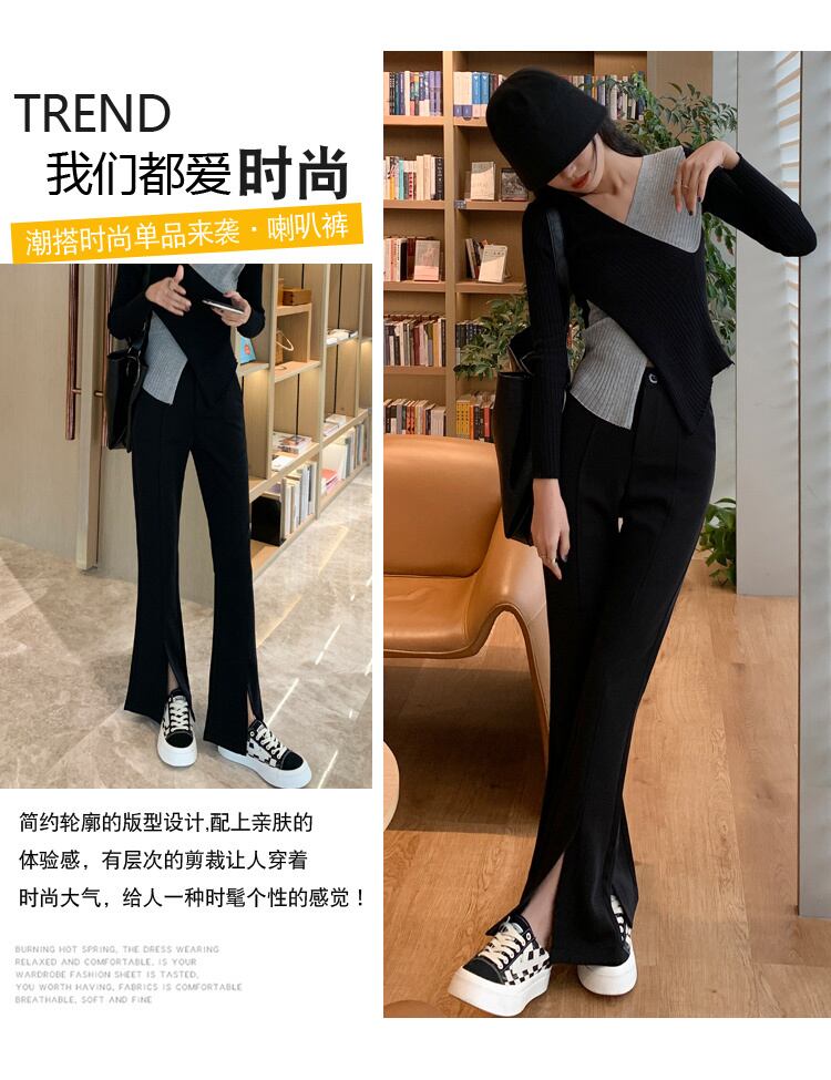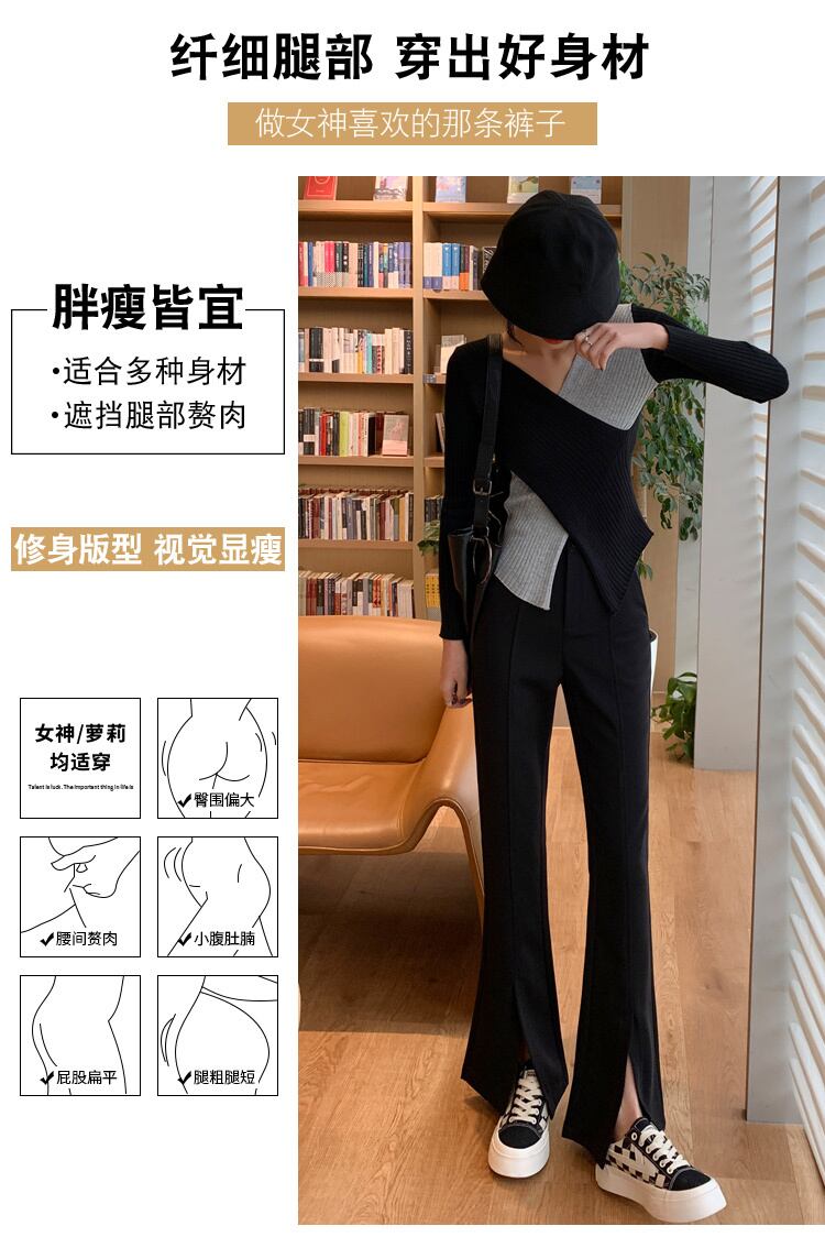 夏服薄手ブラックスリットパンツ ハイウェスト レッド 夏物 ウエスト コーデ Marchs85749080610