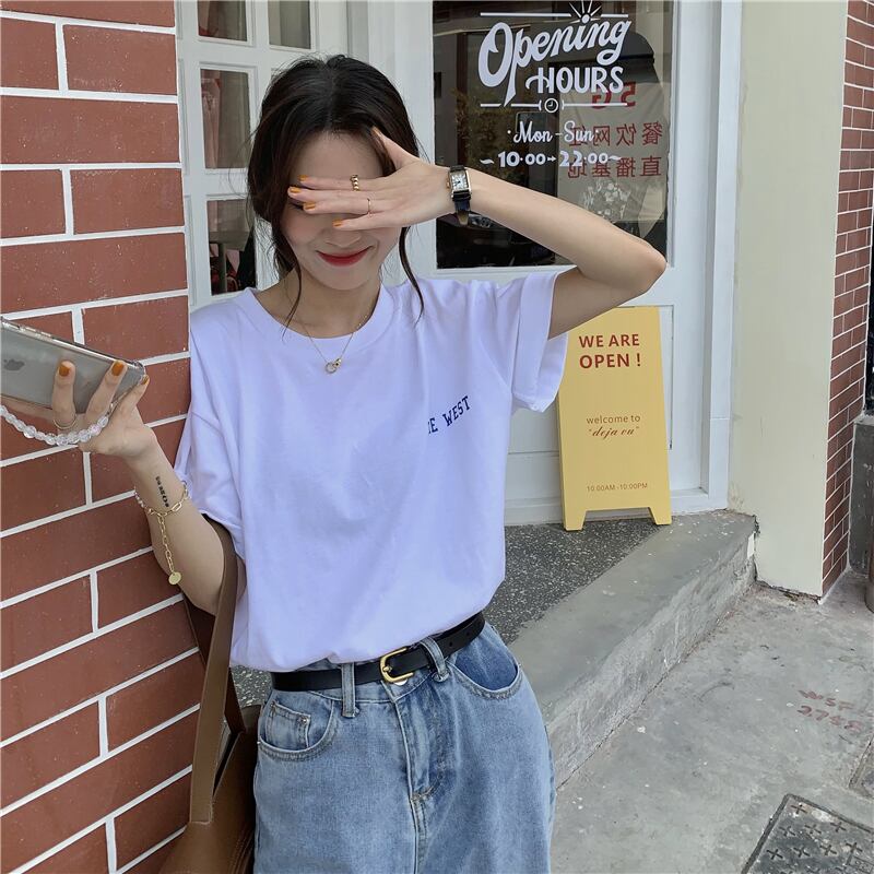 ホワイトTシャツ夏服ルーズ韓国ファッション薄手トップス レッド コットン 夏物 スタイル コーデ Marchs31186534447