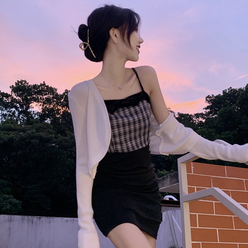 色:白いカーディガン,ブラックカーディガン,チェック柄ホルタースカート
