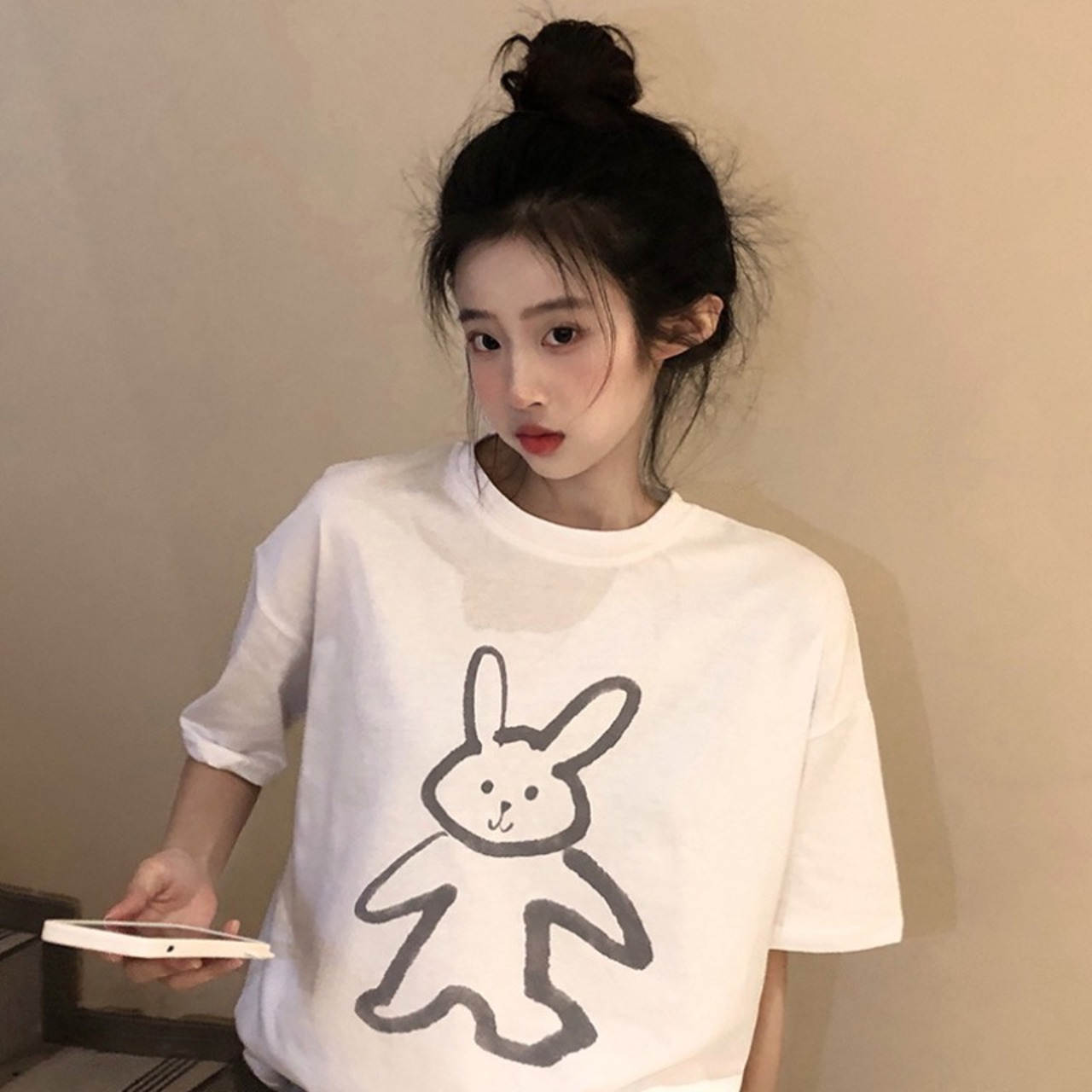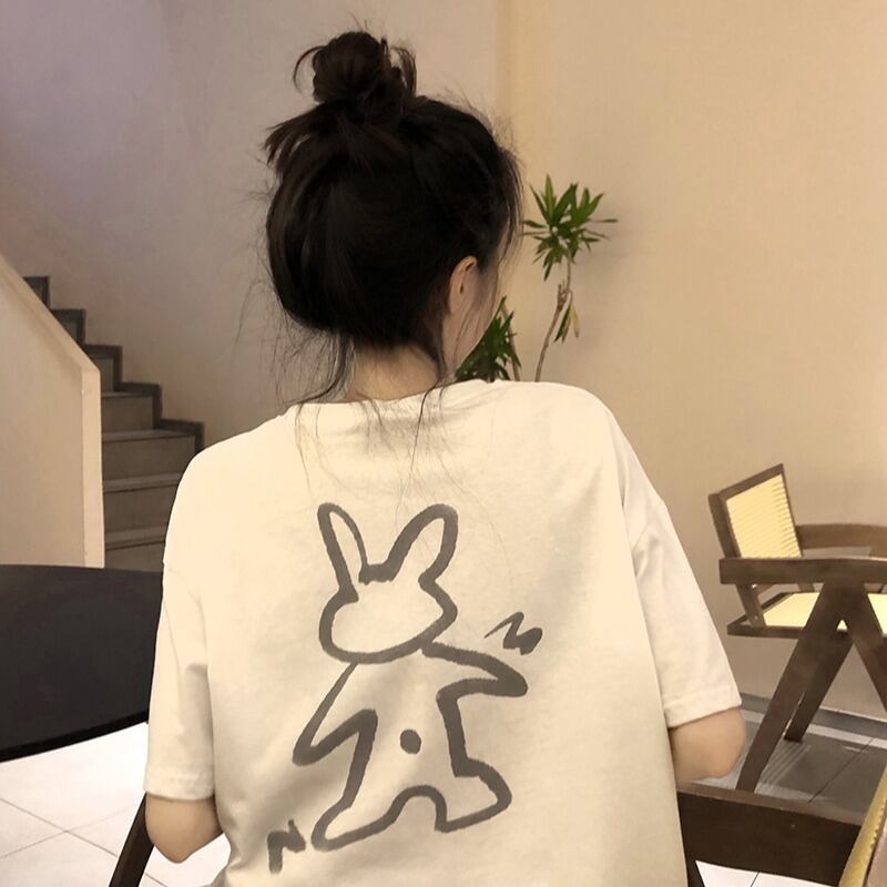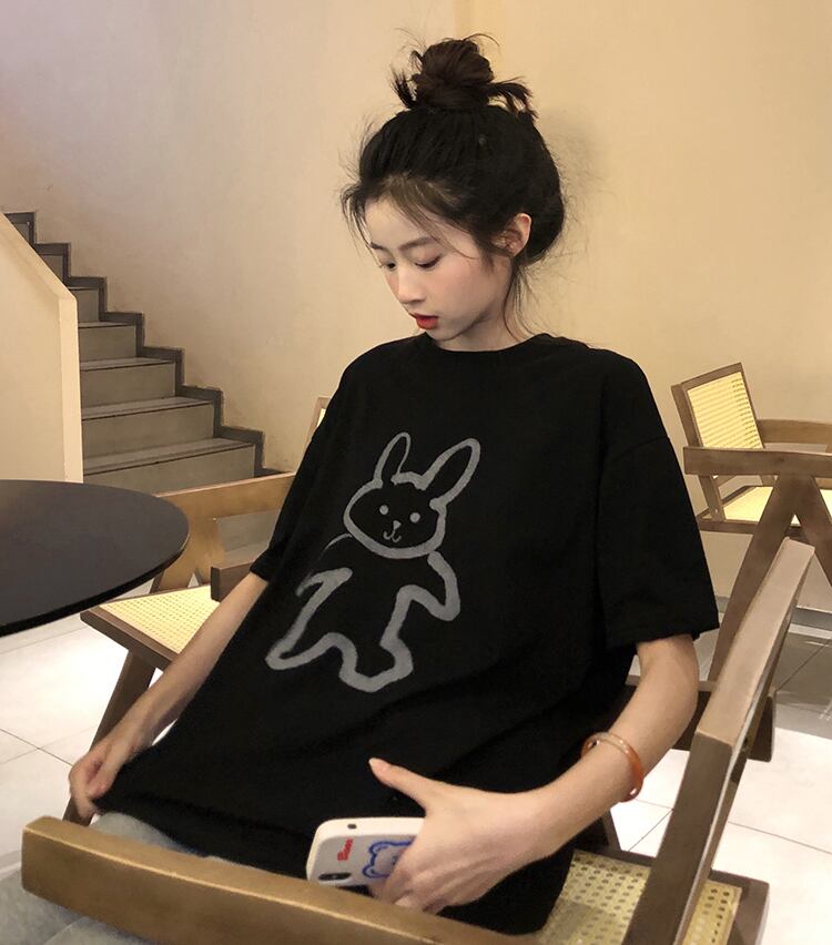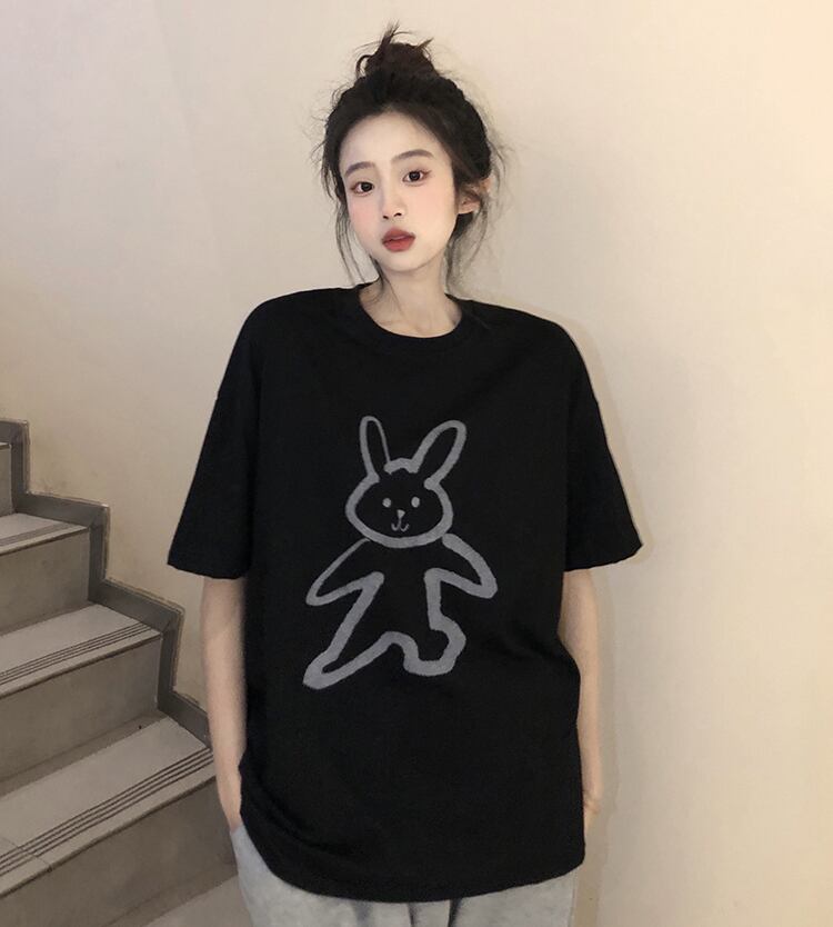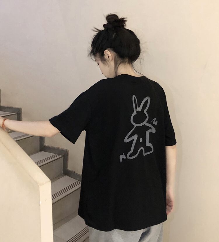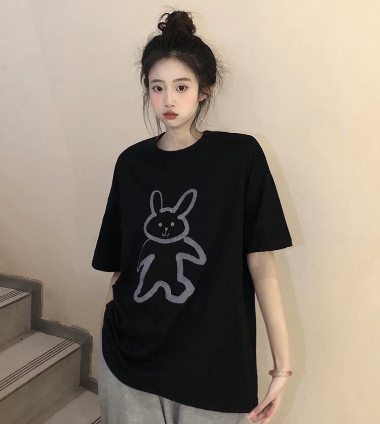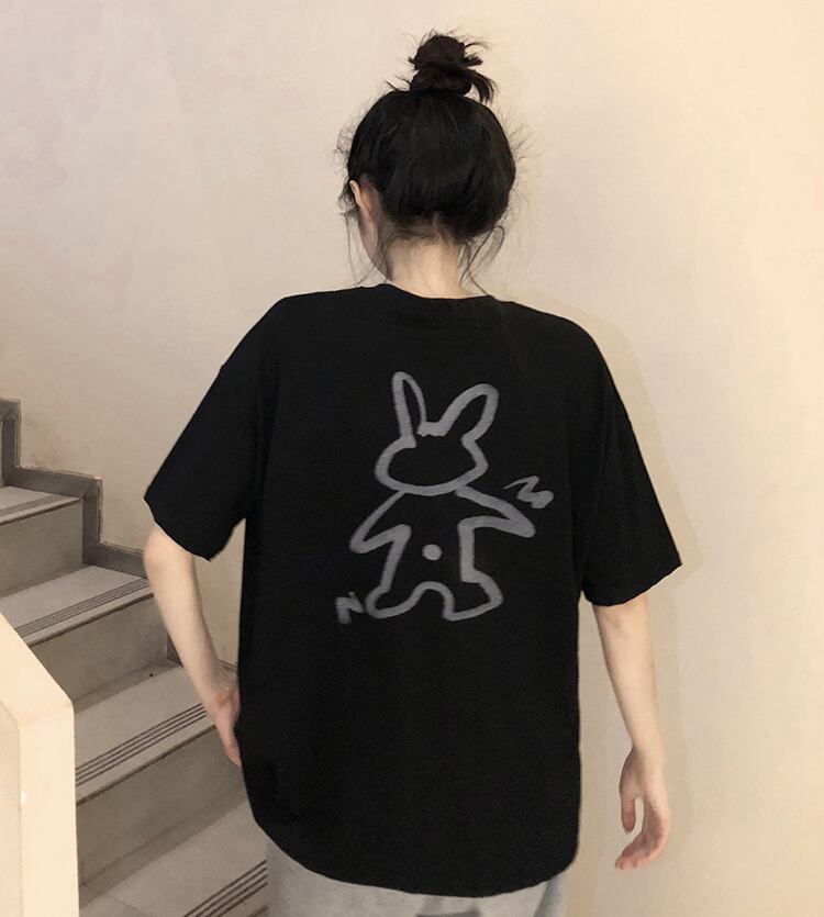 プリント柄ブラックTシャツ夏服NEWルーズカジュアルトップス コットン 夏物 コーデ Marchs21996132815
