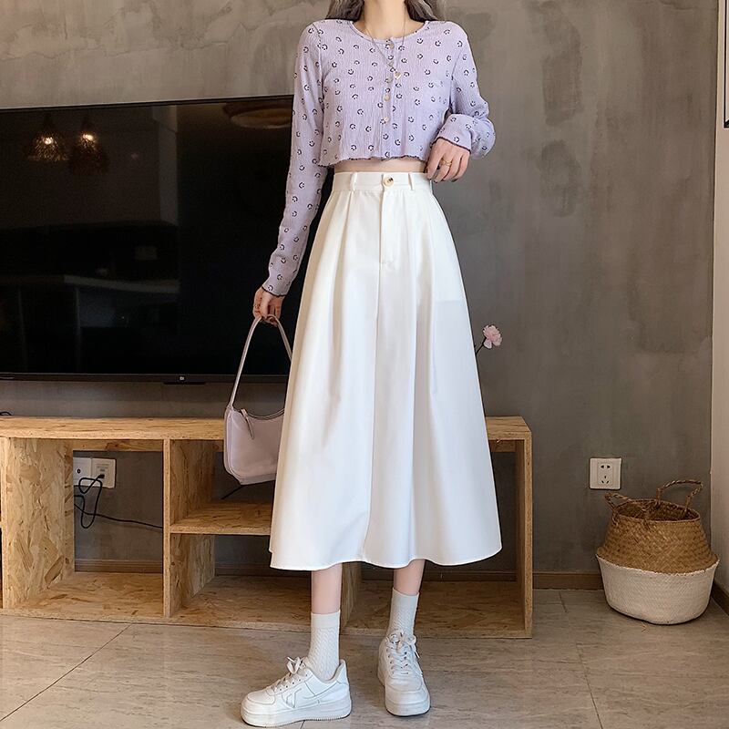 ホワイトスカート 夏服薄手ハイウェストウェストAラインロング 夏物 ウエスト コーデ Marchs2302451161