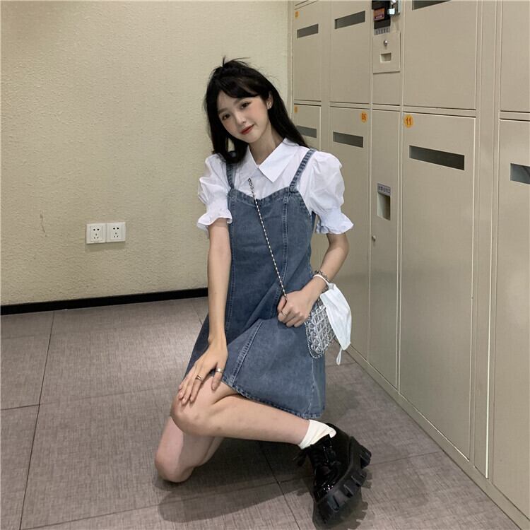 ワンピース夏服Aラインショートスカート 韓国ファッション 夏物 スタイル パフスリーブ コーデ Marchs66603363066
