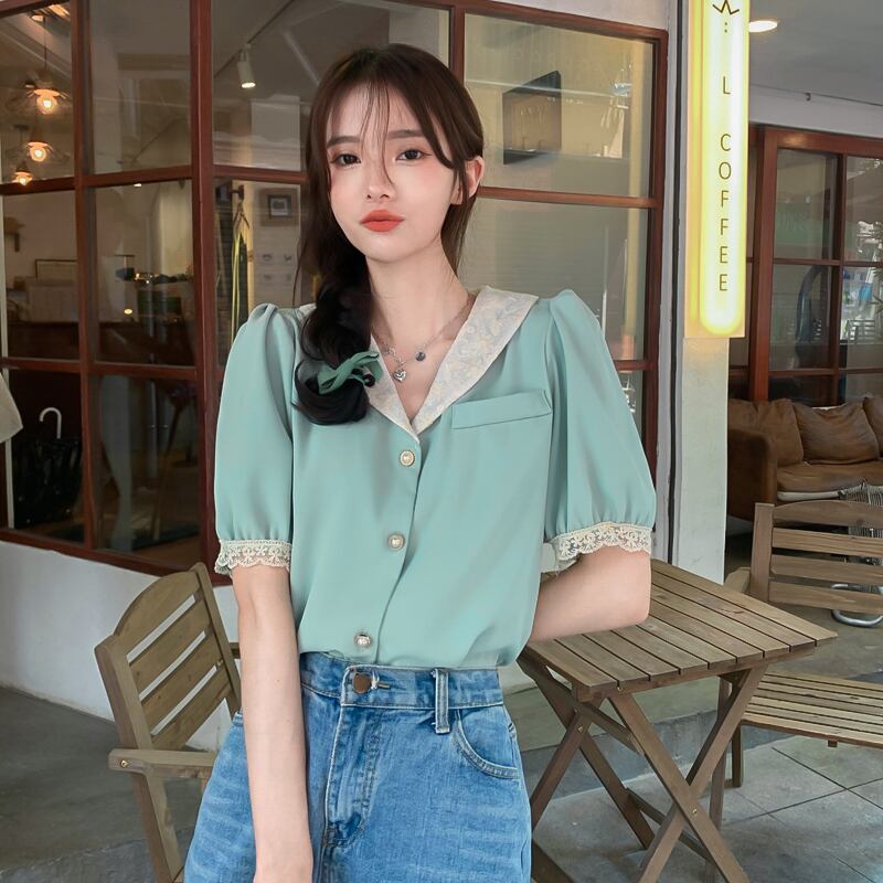 パフスリーブスリーブシャツ 夏服レース薄手トップス 大きめサイズ 夏物 コーデ Marchs15331764994