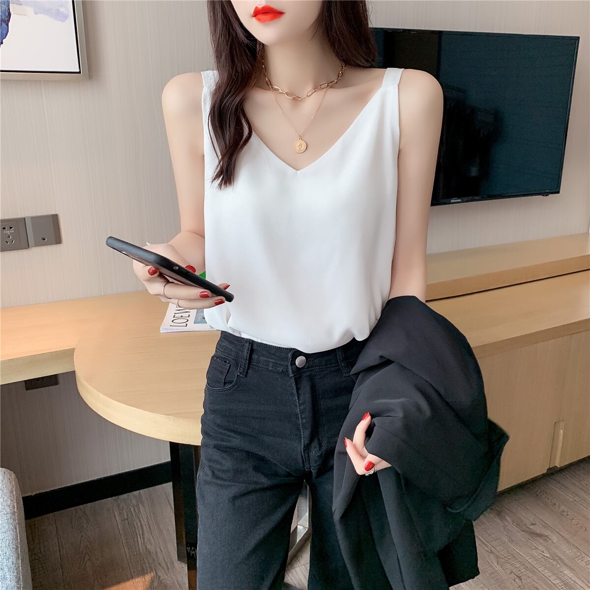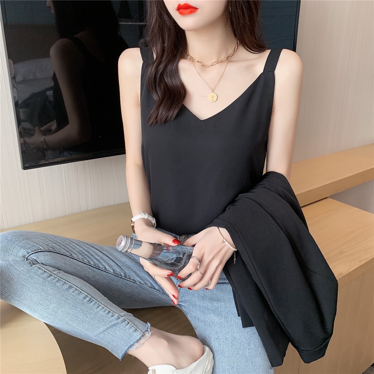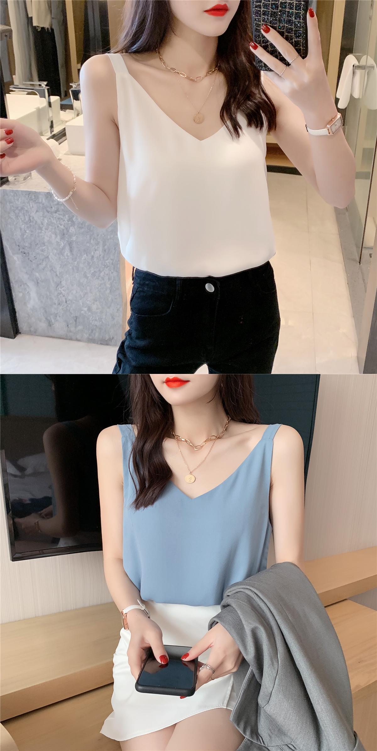 シフォンスプリング夏服ゆったりシャツ 韓国ファッションスタイルルーズノースリーブトップス 春物 夏物 NEW コーデ Marchs2732413385
