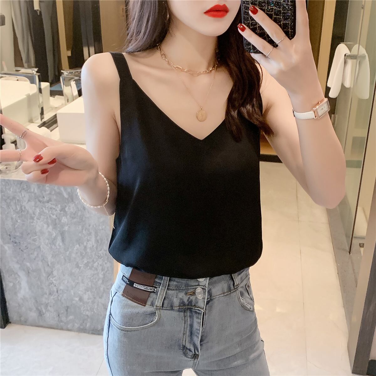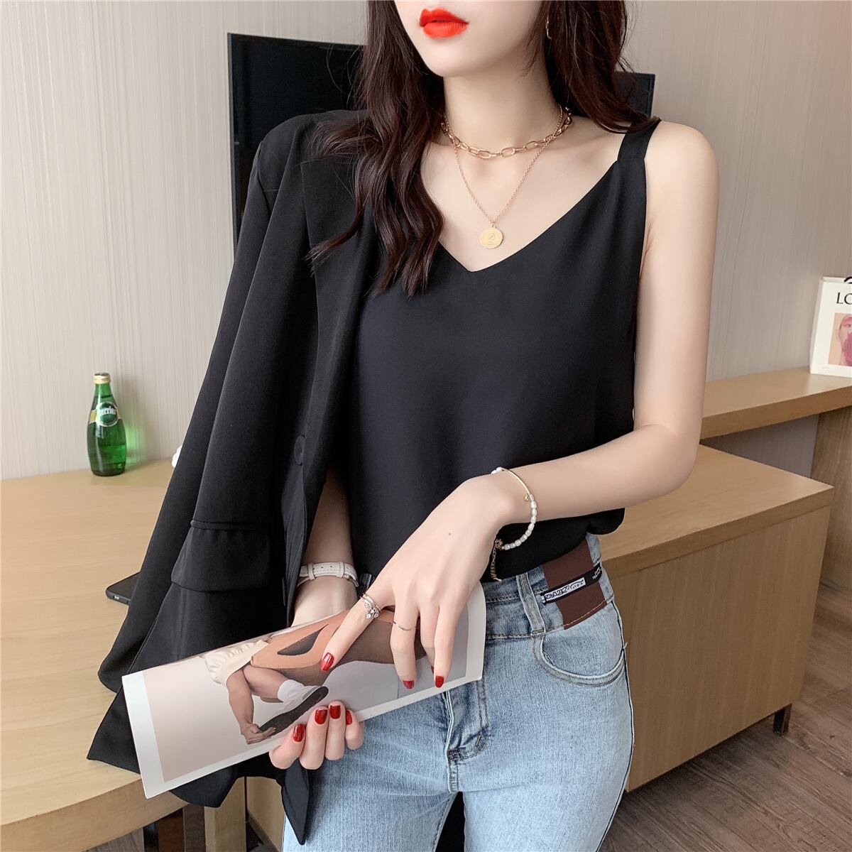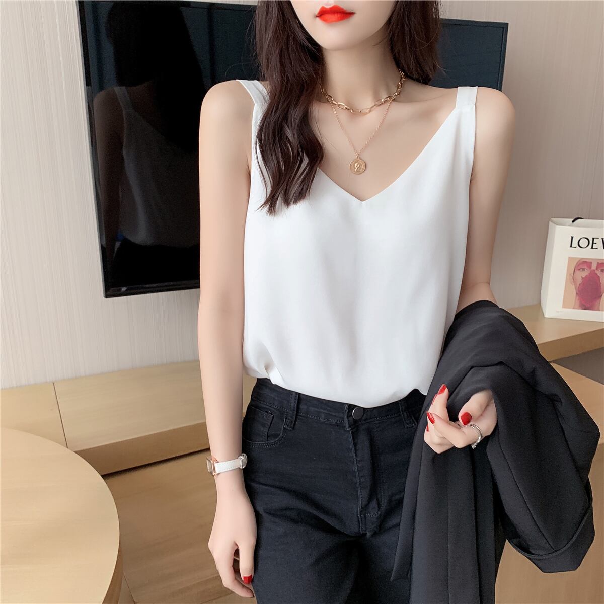 シフォンスプリング夏服ゆったりシャツ 韓国ファッションスタイルルーズノースリーブトップス 春物 夏物 NEW コーデ Marchs2732413385