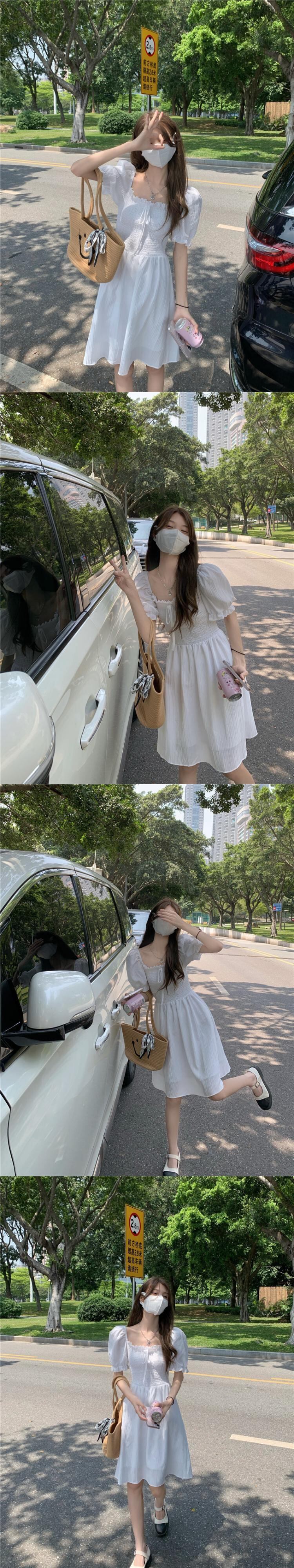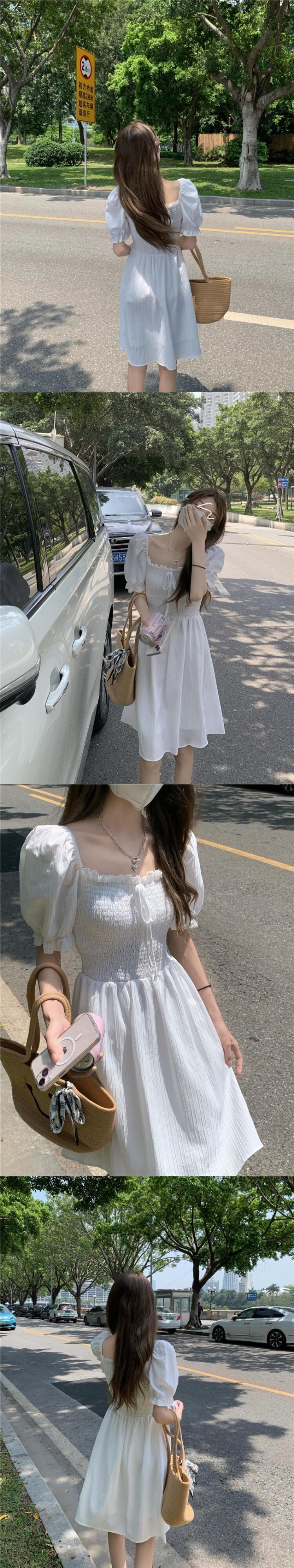 スカート ウェスト韓国ファッションスタイルスリーブワンピース 大人ガーリー スウィート キュート カジュアル スクウェア ウエスト コーデ Marchs42272715287