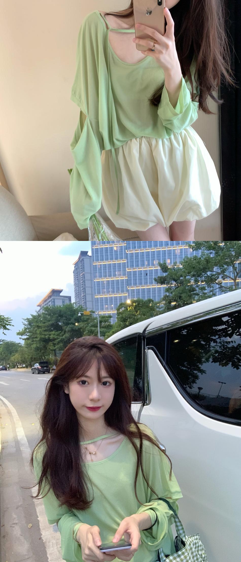 ホワイトTシャツ夏服薄手ルーズブラウス トップス ロング レース 夏物 レースアップ 長袖 ミドル丈 コーデ Marchs88411010078