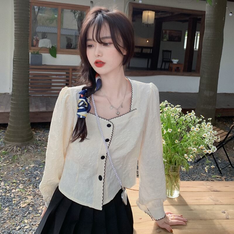 スタンダードカラーシャツ ショートトップス レトロ スクウェア コーデ Marchs77781442951