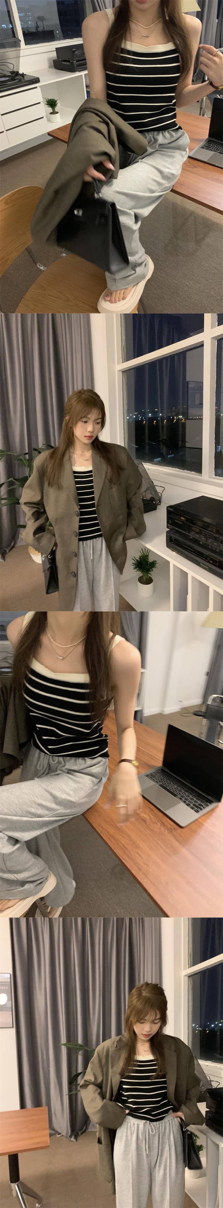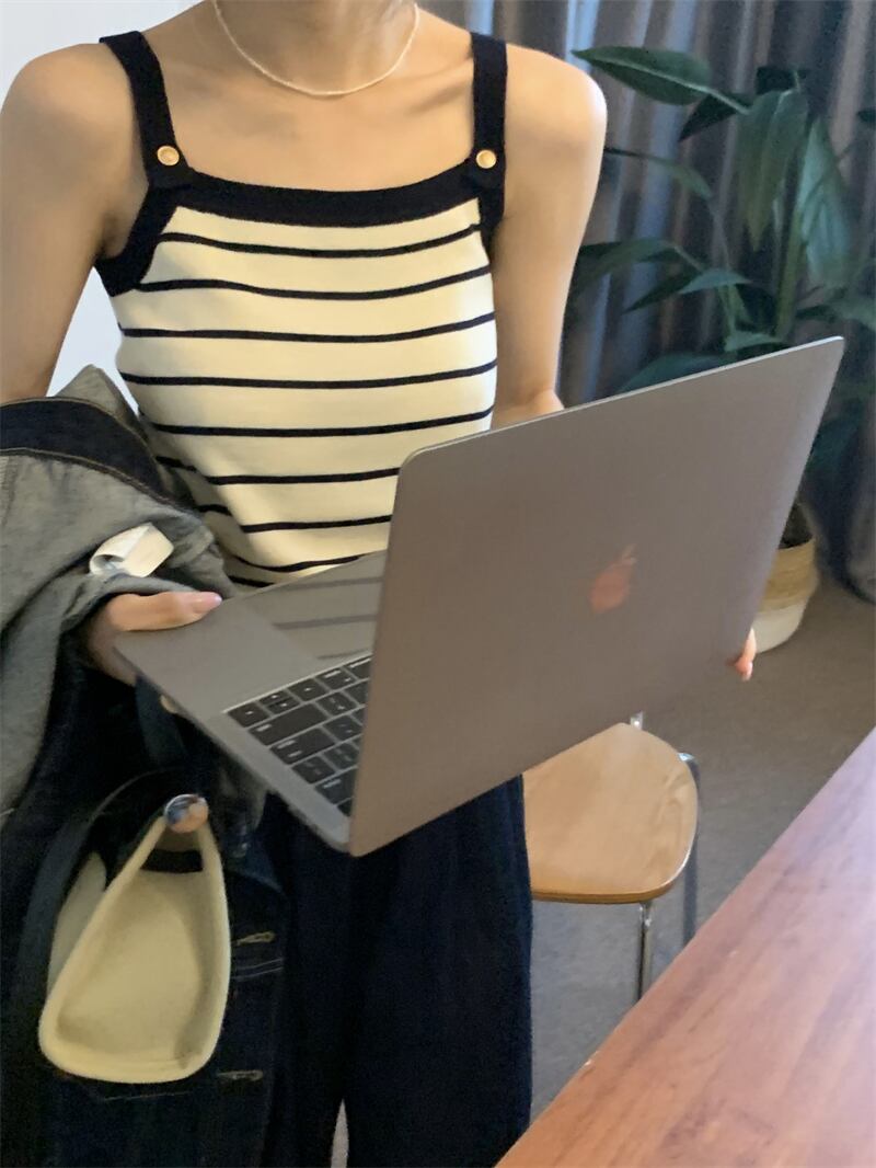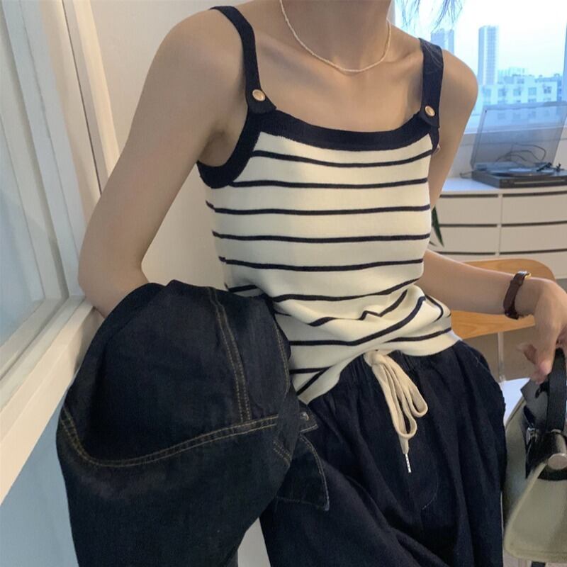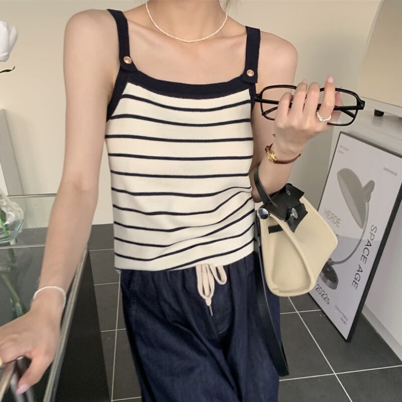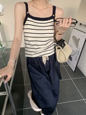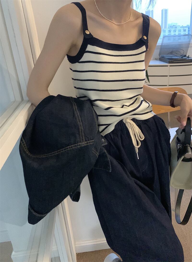 ノースリーブストライプ夏服ニットトップス 夏物 コーデ Marchs71439157992