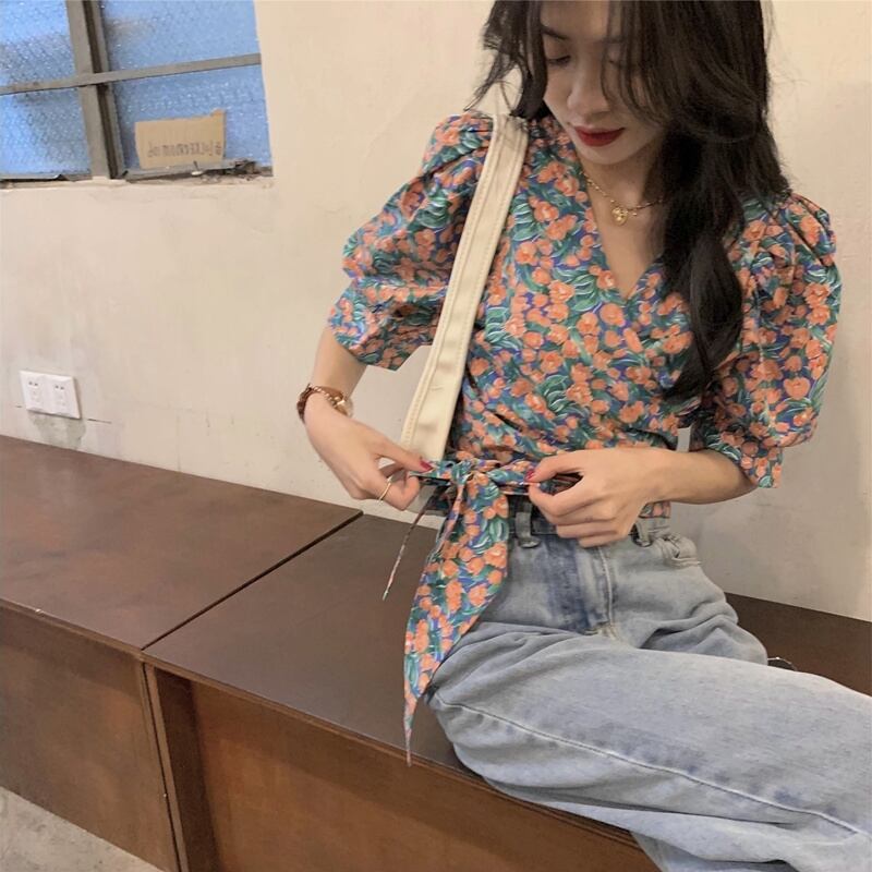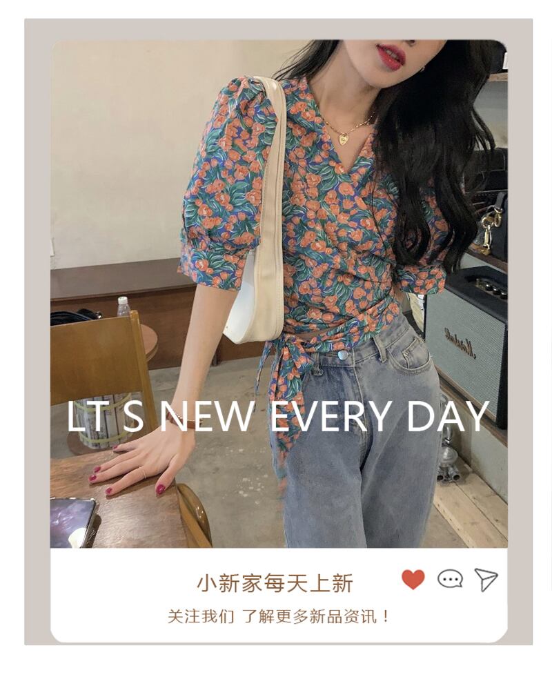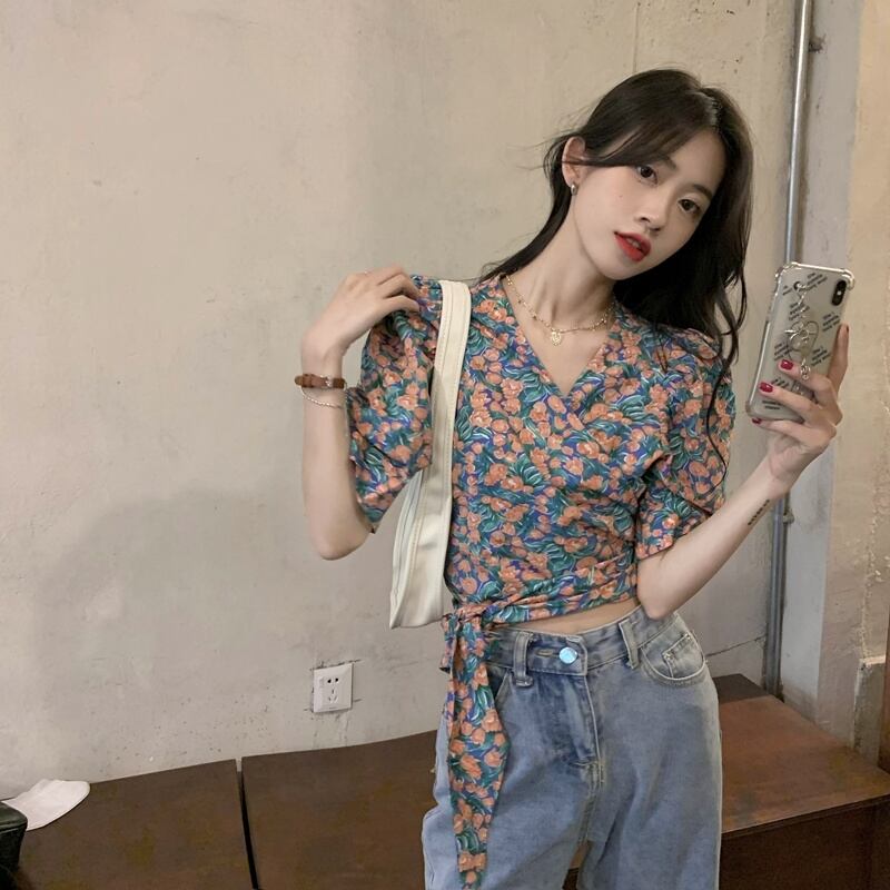 夏服ストラップ ウェストフローラルトップス スタンダードシャツ レトロ 夏物 花柄 ウエスト コーデ Marchs54141714547