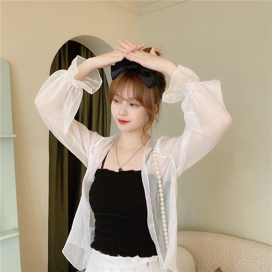 色:オフホワイトの日焼け止め服,白いベスト,黒のベスト