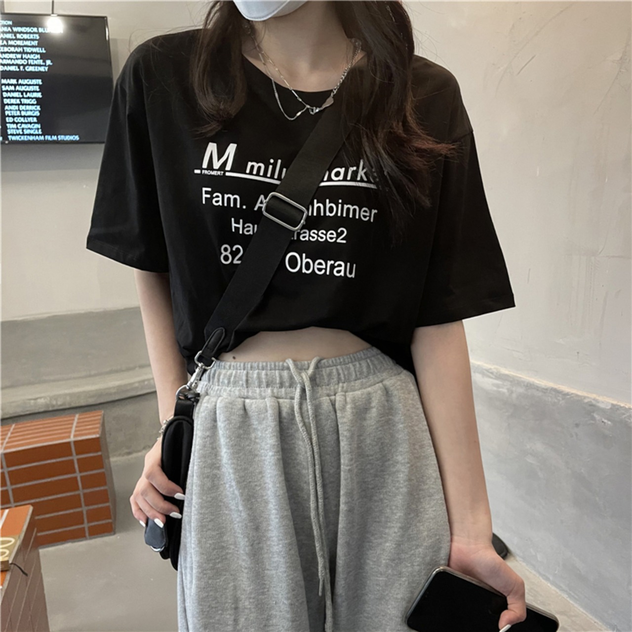 夏服韓国ファッションルーズプリントラウンドネックショートTシャツハイウェストウェストトップス 夏物 Oネック スタイル ウエスト コーデ Marchs86028594928