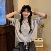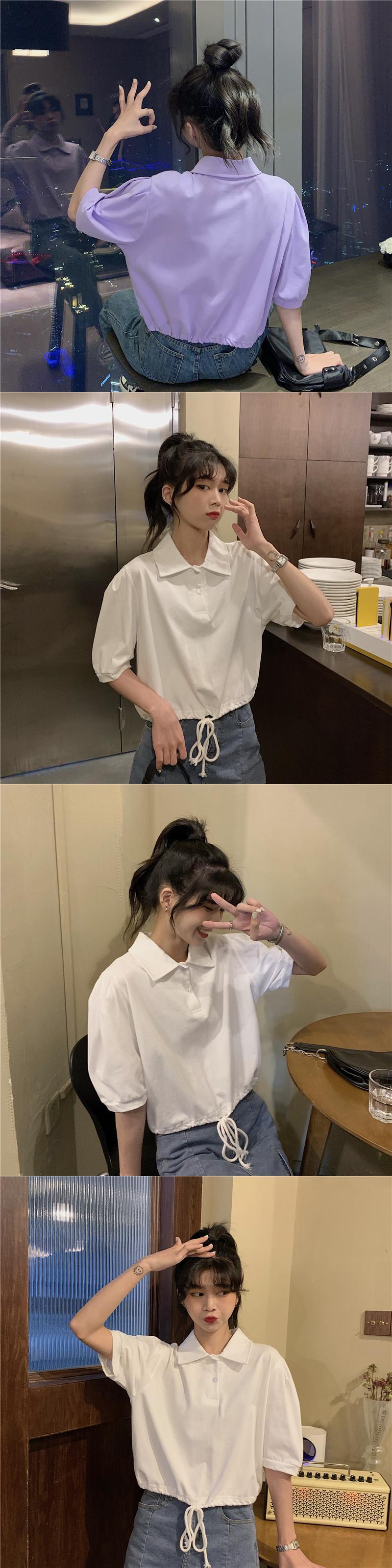 シャツ ギャザーショートTシャツ薄手夏服ハイウェストウェストトップス NEW 夏物 ウエスト コーデ Marchs29332268236