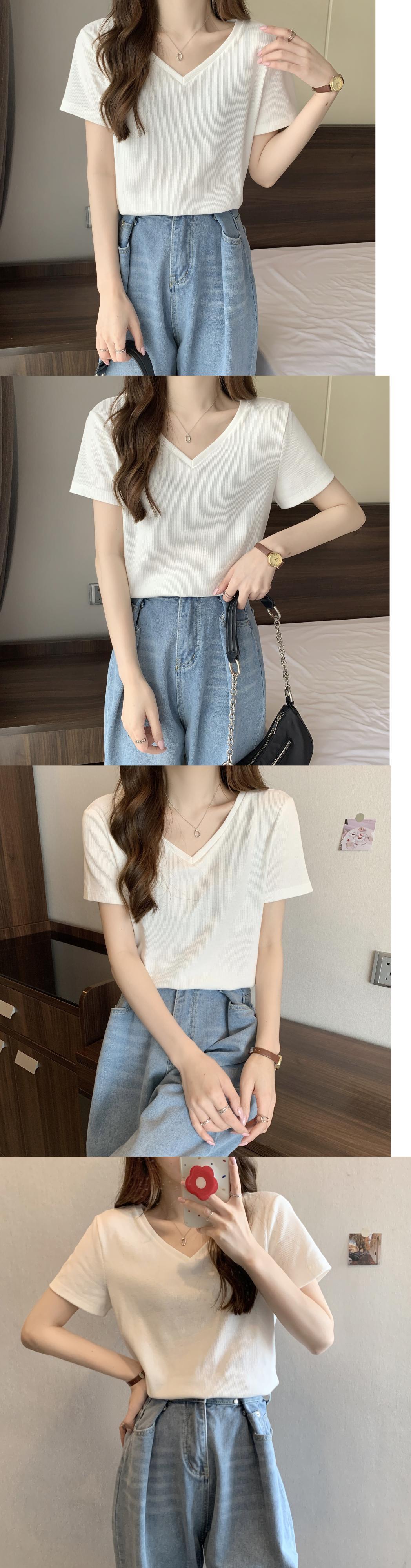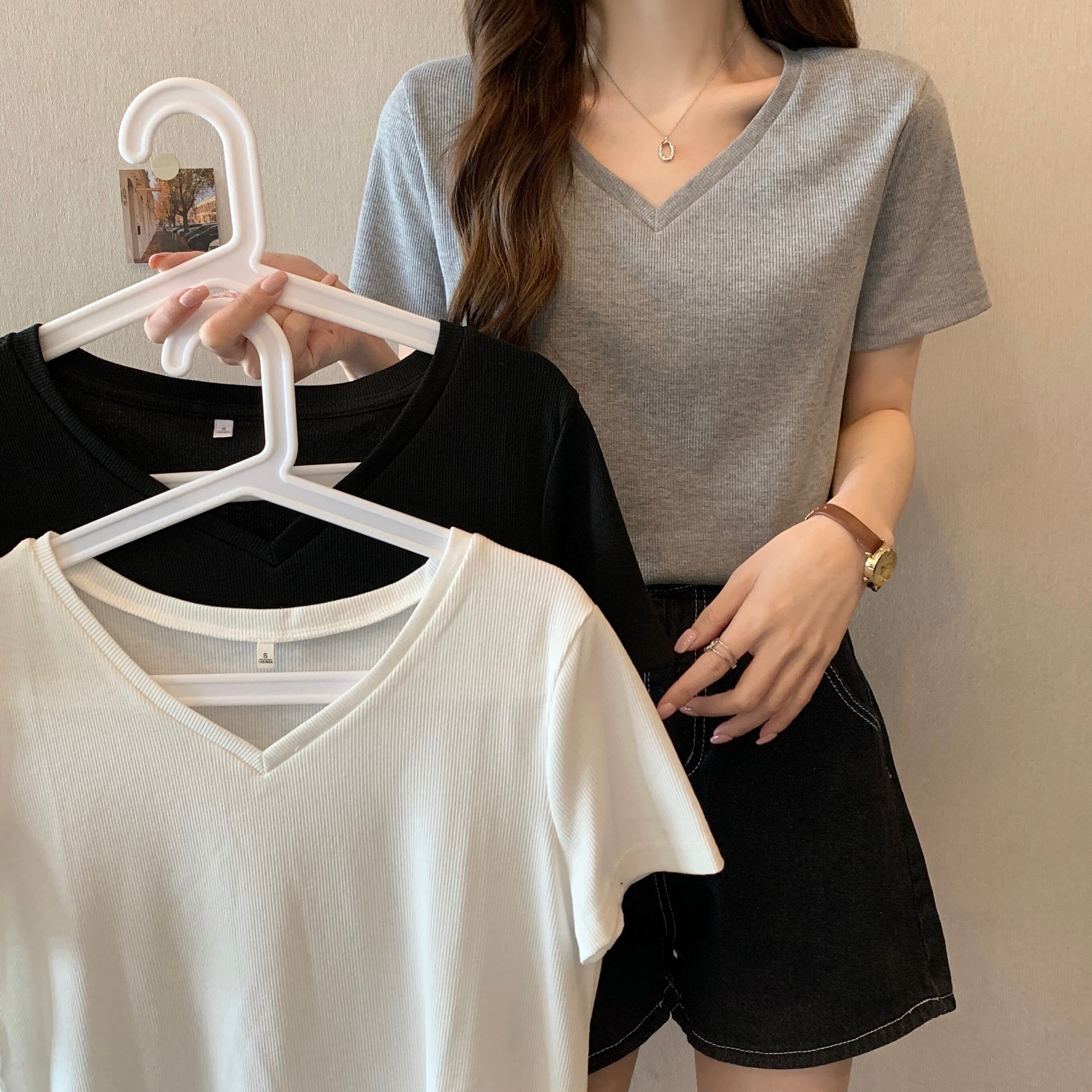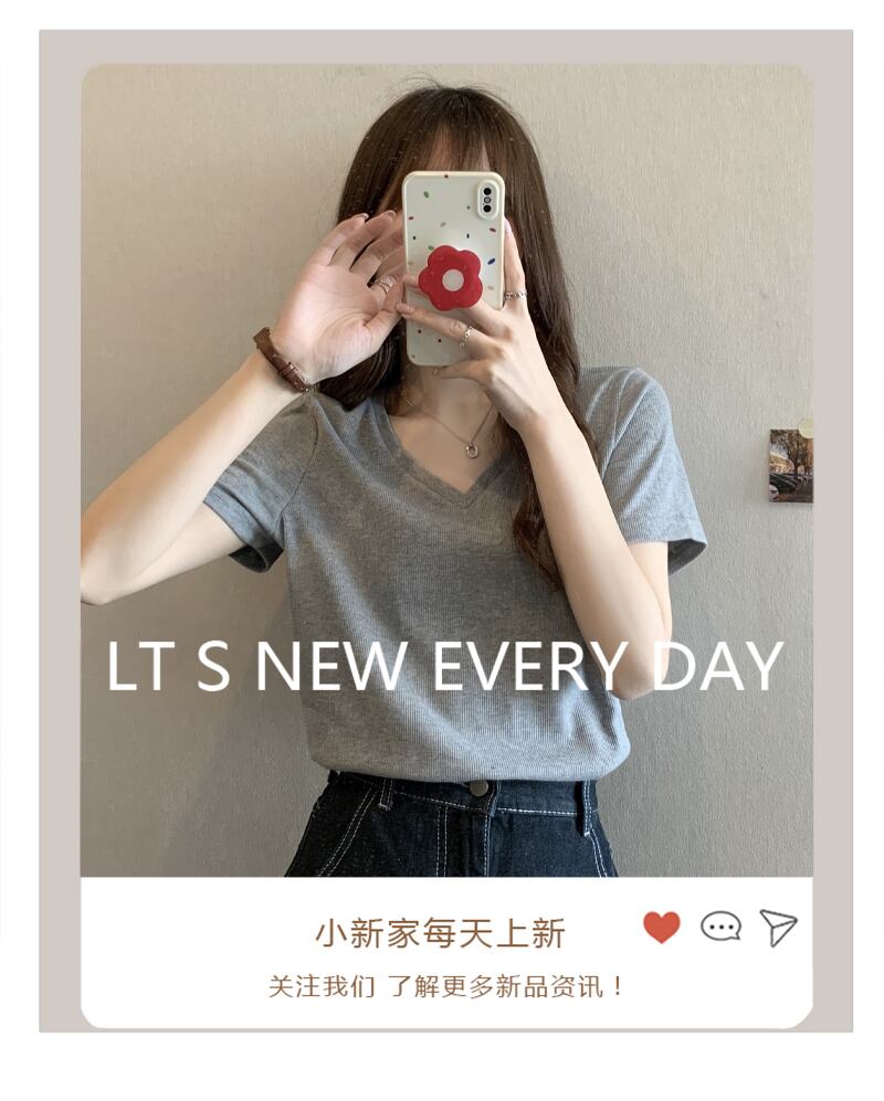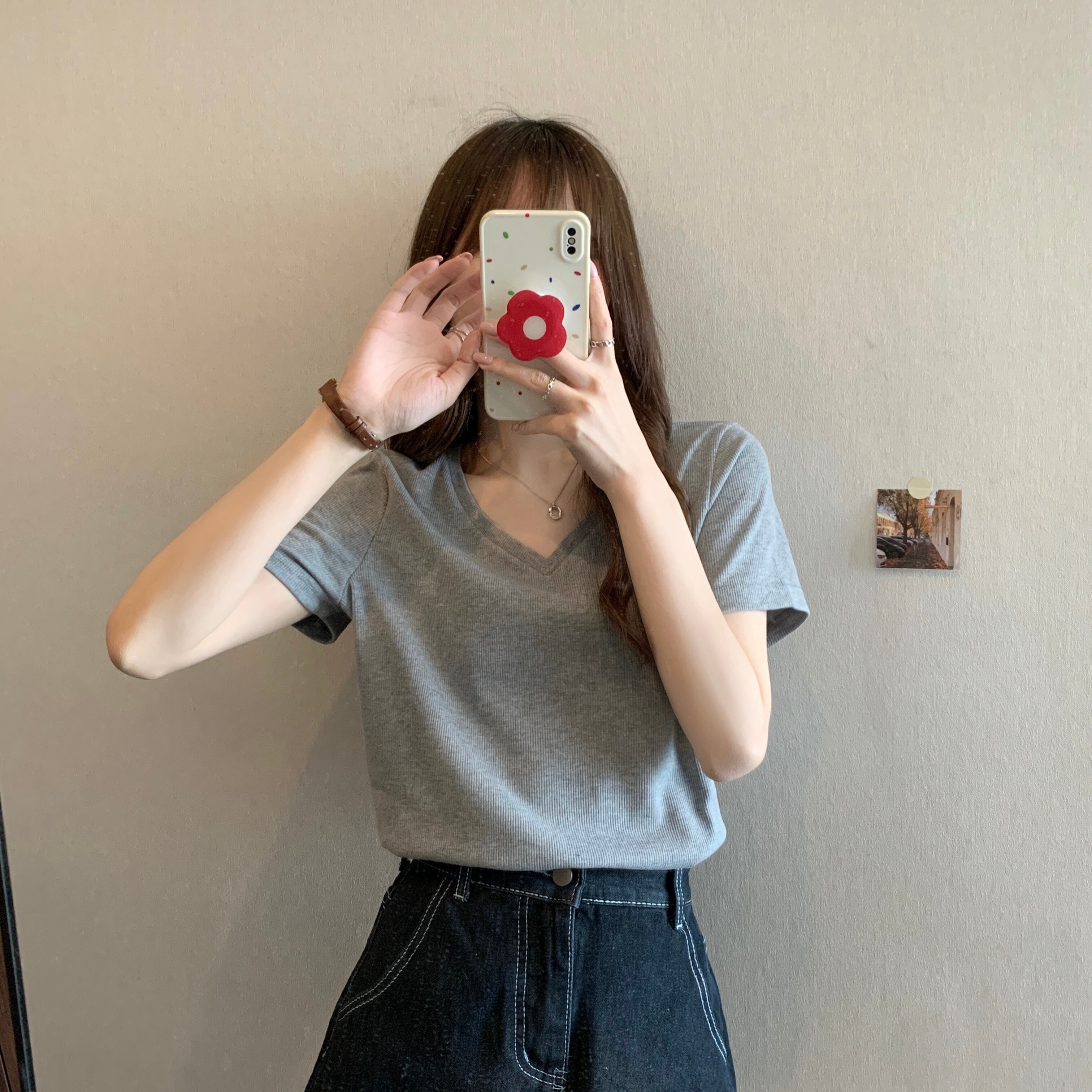 グレーVネックTシャツ夏服薄手トップス 夏物 コーデ Marchs18906022289
